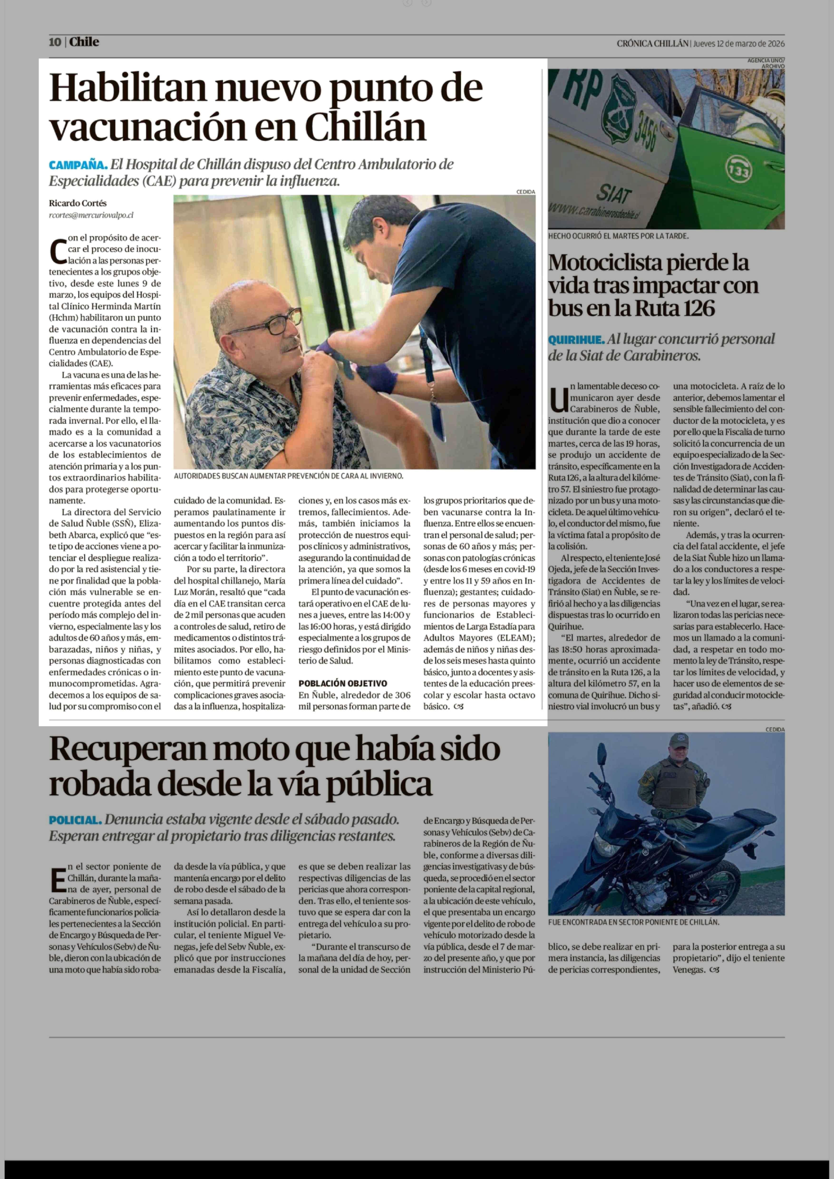 Fecha: 12-03-2026 Sector: Noticia general Región: Región del Ñuble