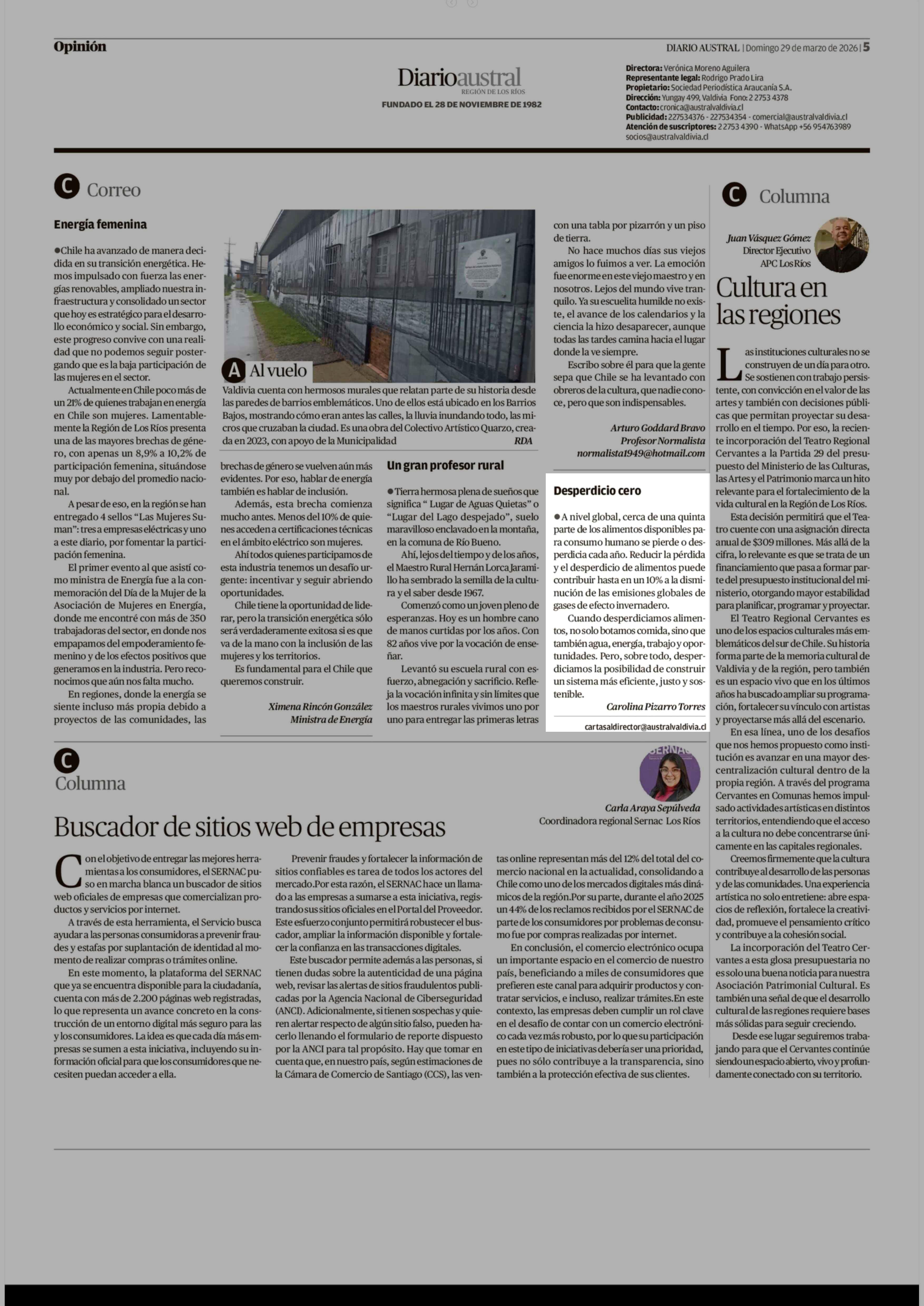 CARTAS: Desperdicio cero 29-03-2026 Diario Austral Región de Los Ríos |