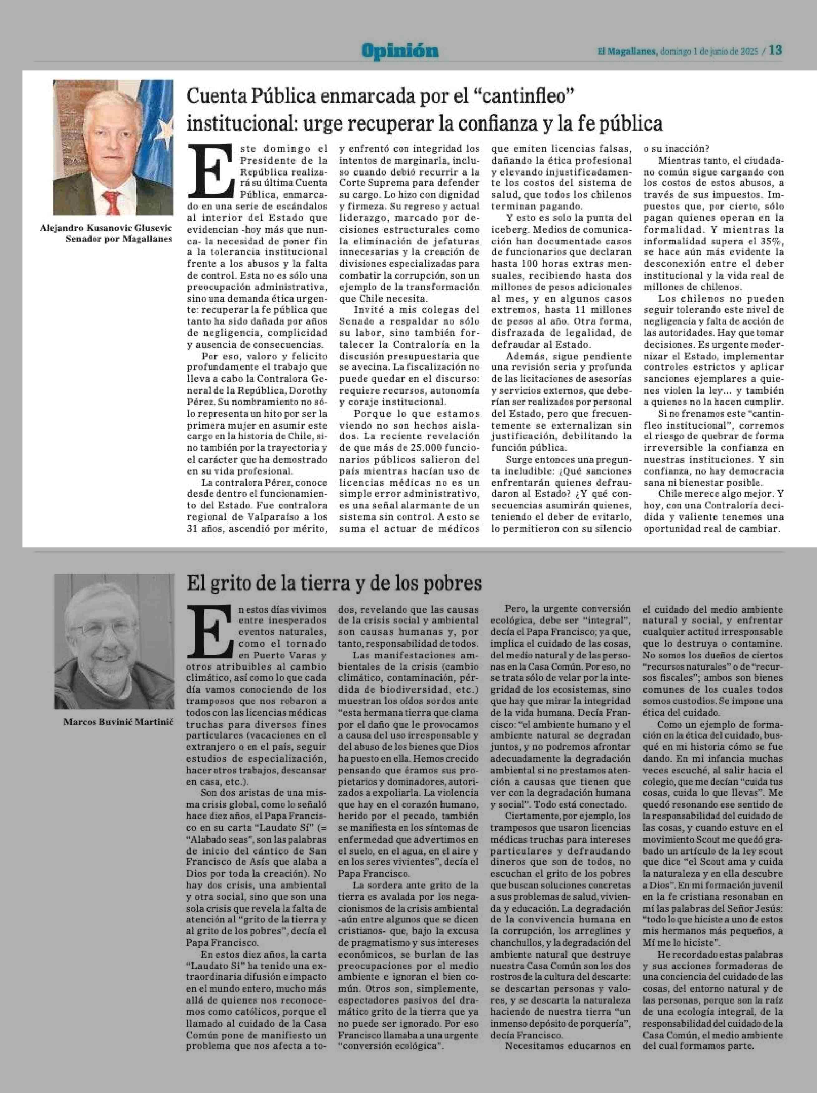 | Fecha: | 01-06-2025 | Sector: | Columnas de Opinión | Región: | Región de Magallanes y de la Antártica Chilena |