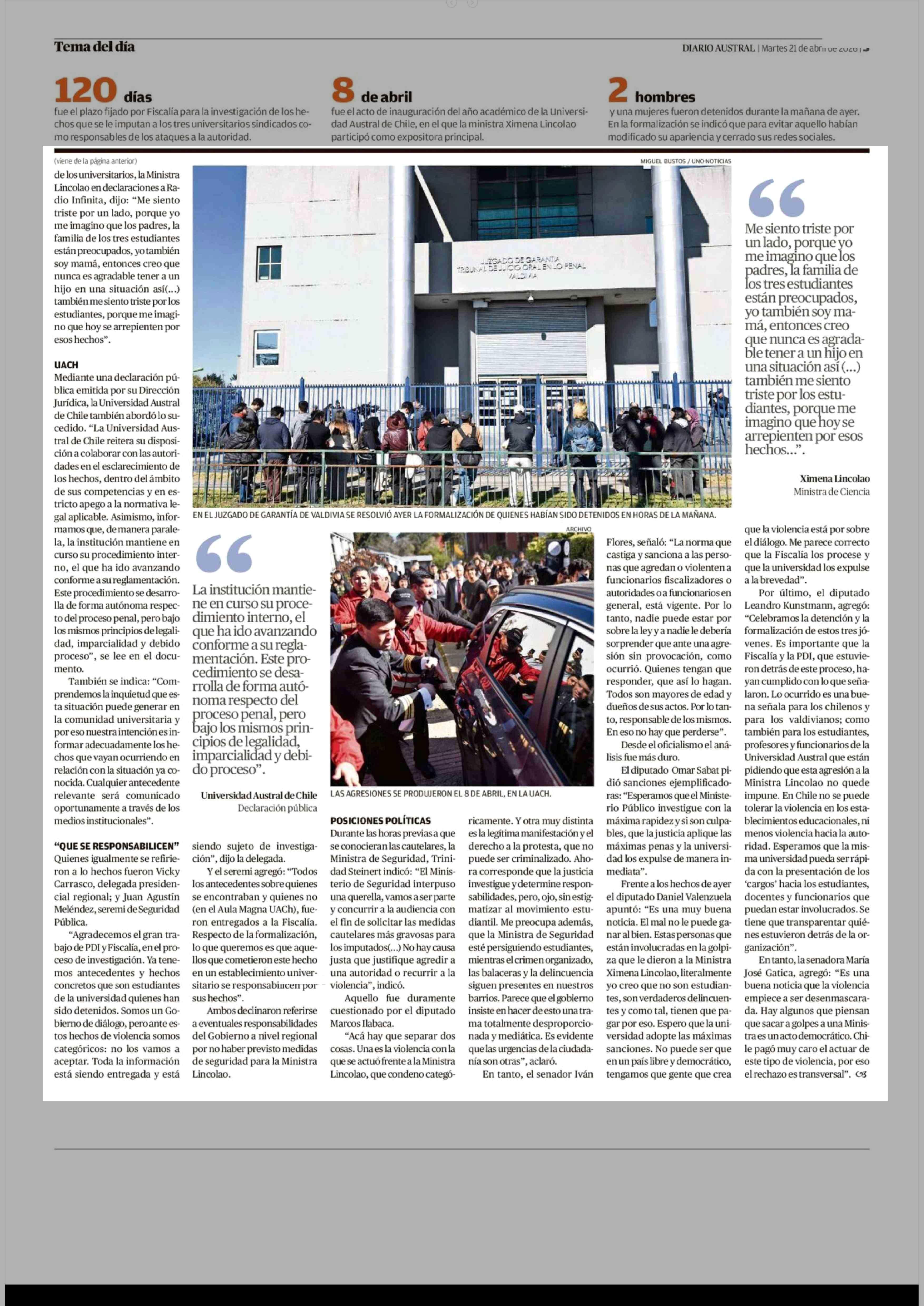 Título: Tres alumnos UACh formalizados por ataque a la Ministra Lincolao
