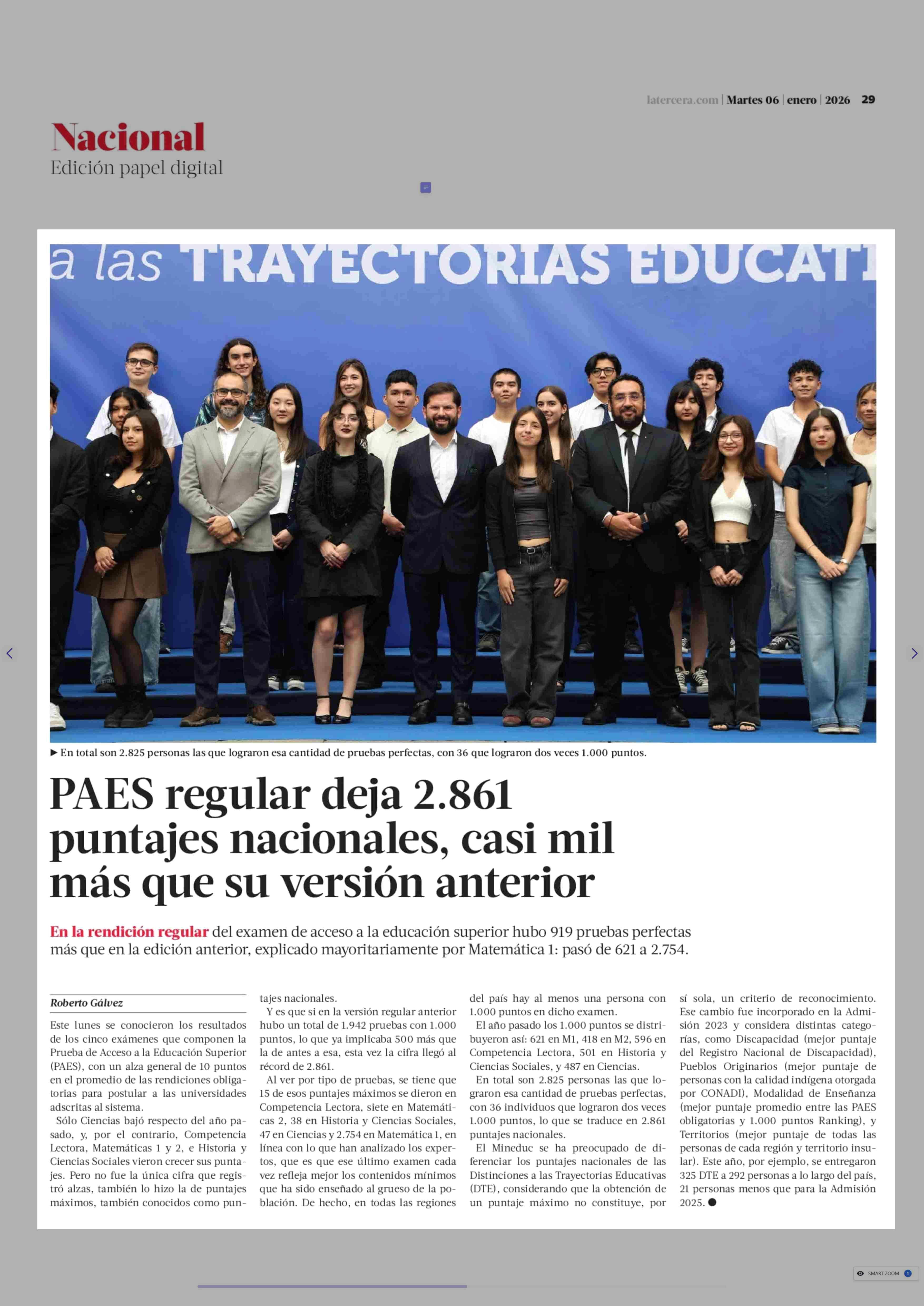Título: PAES regular deja 2.861 puntajes nacionales, casi mil más que su versión anterior
