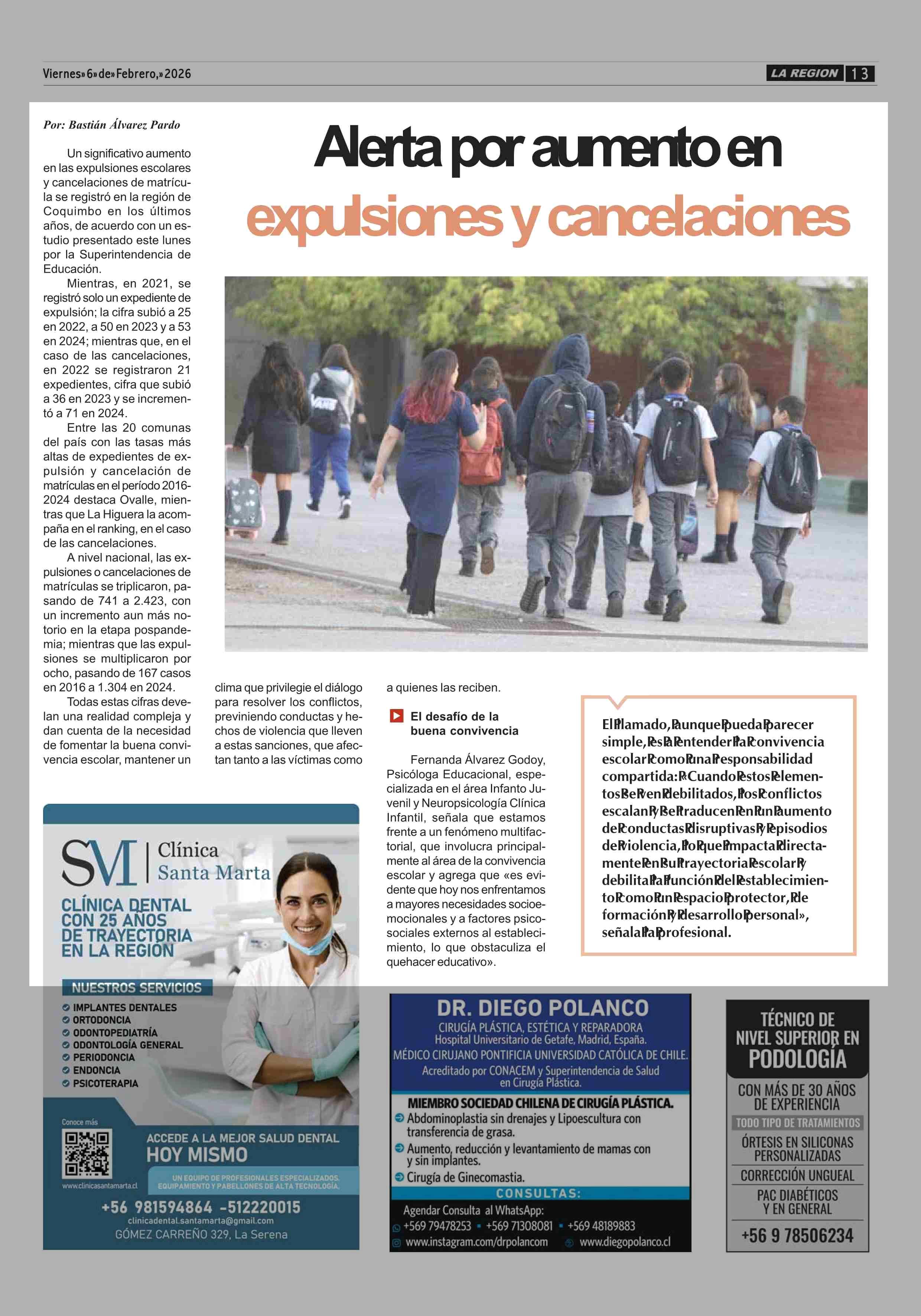 Alerta por aumento en expulsiones y cancelaciones 06-02-2026 Diario la Región |