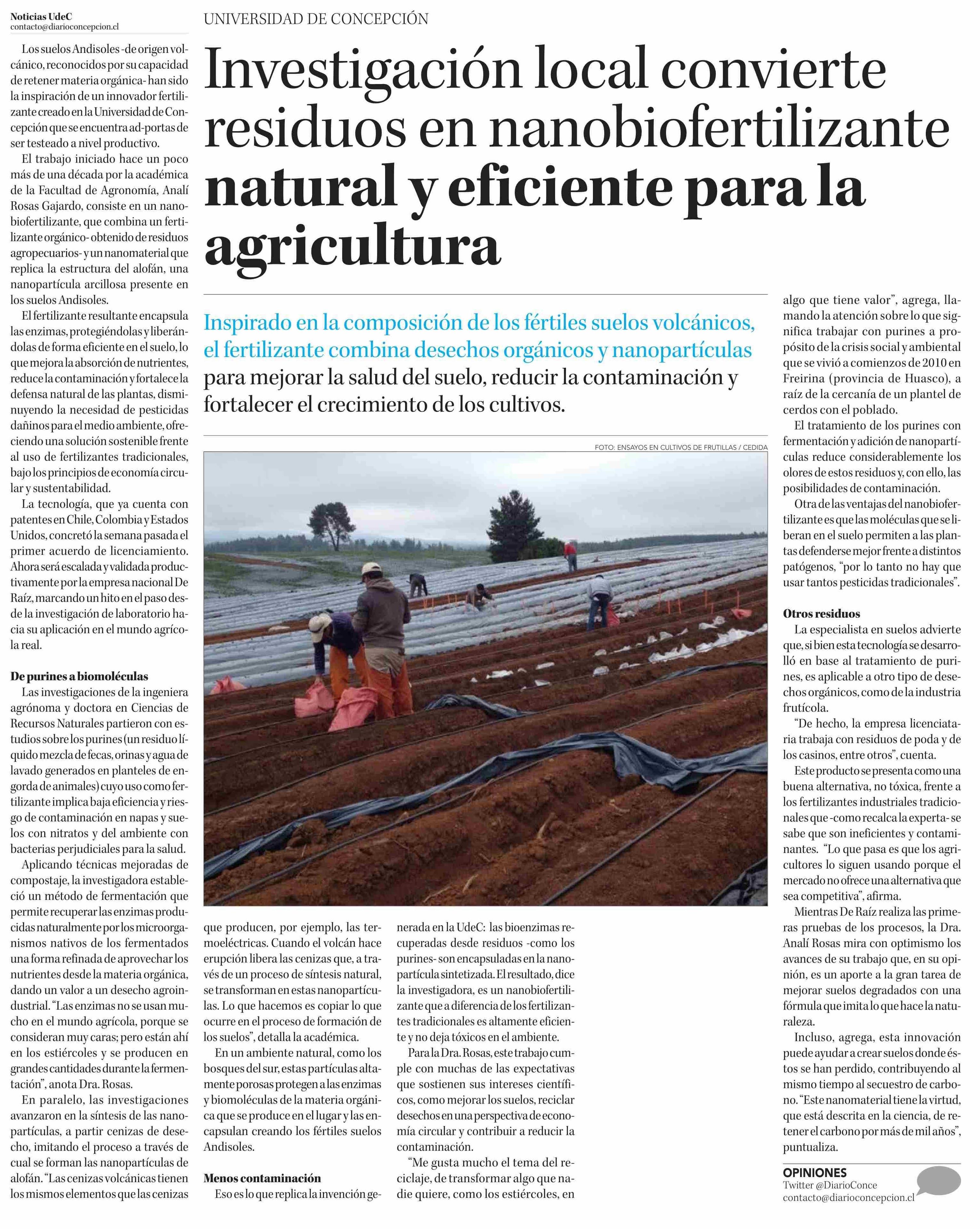 Investigación local convierte residuos en nanobiofertilizante natural y eficiente para la 21-04-2025 Diario Concepción |