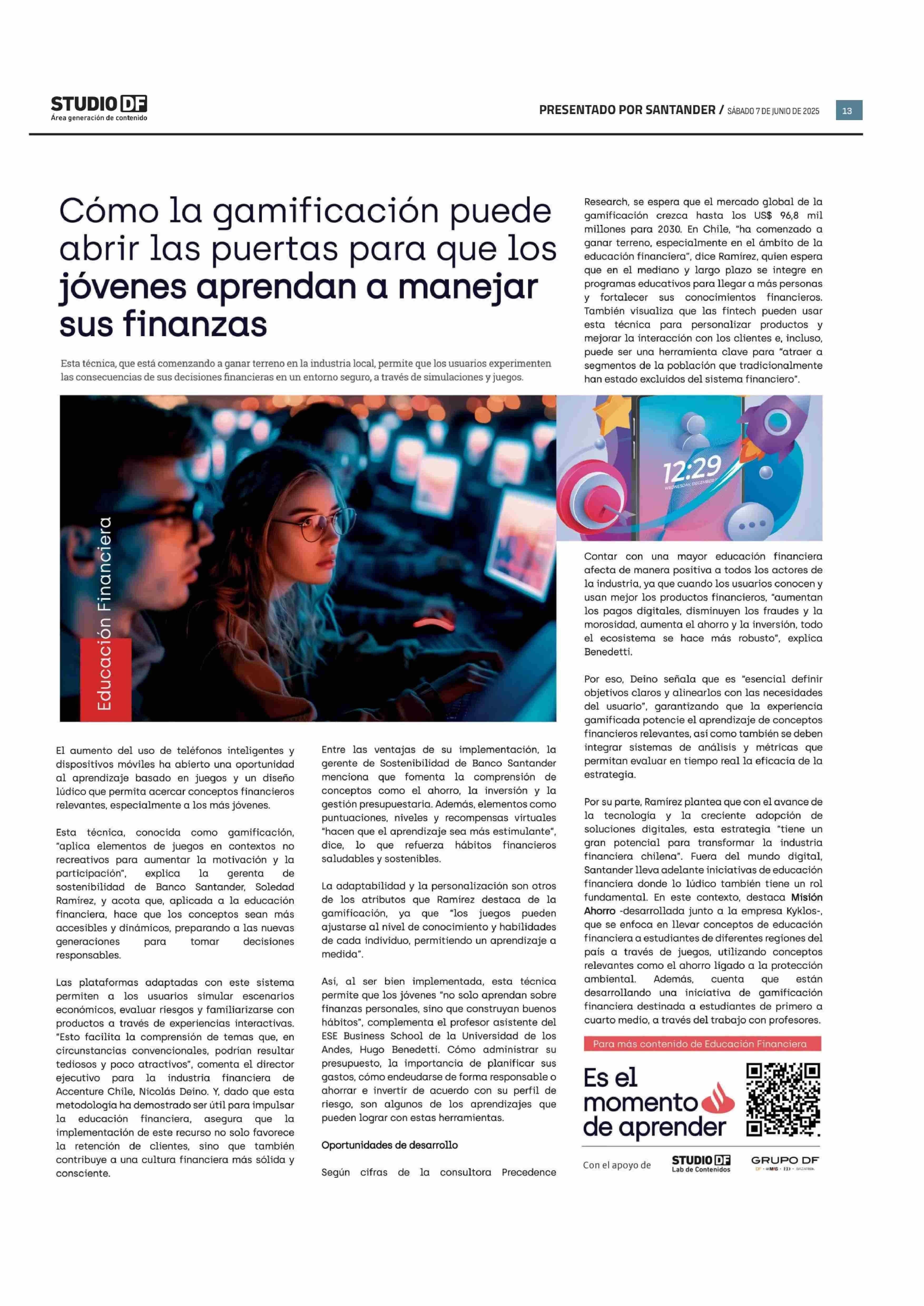 Cómo la gamificación puede abrir las puertas para que los jóvenes aprendan a manejar sus finanzas 07-06-2025 Diario Financiero |