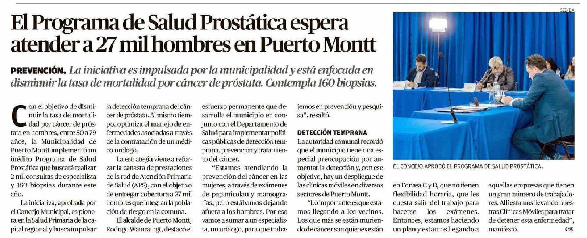 El Programa de Salud Prostática espera atender a 27 mil hombres en Puerto Montt 08-04-2025 El Llanquihue |