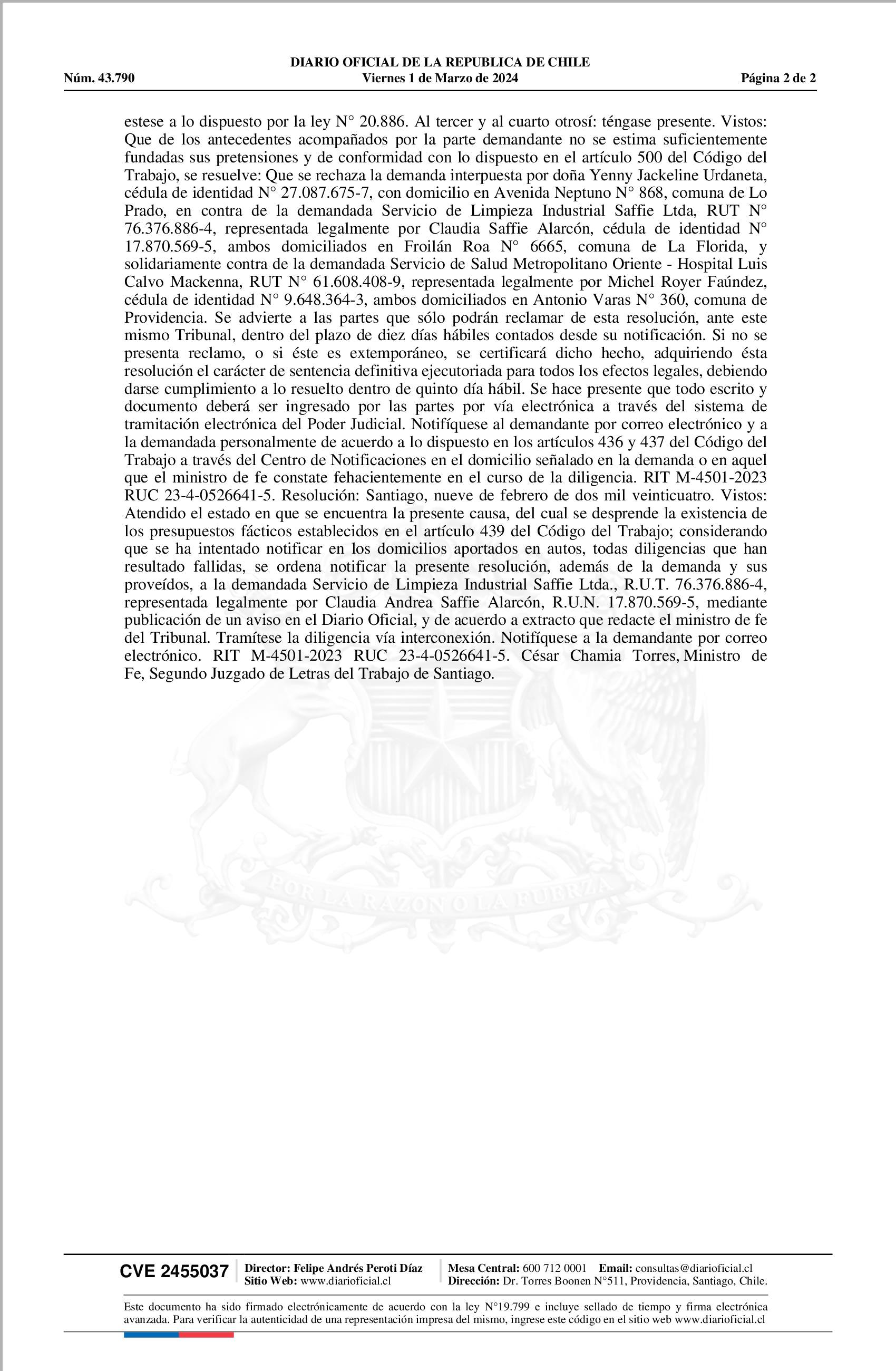 Notificación 01-03-2024 Diario Oficial Edición Electrónica |