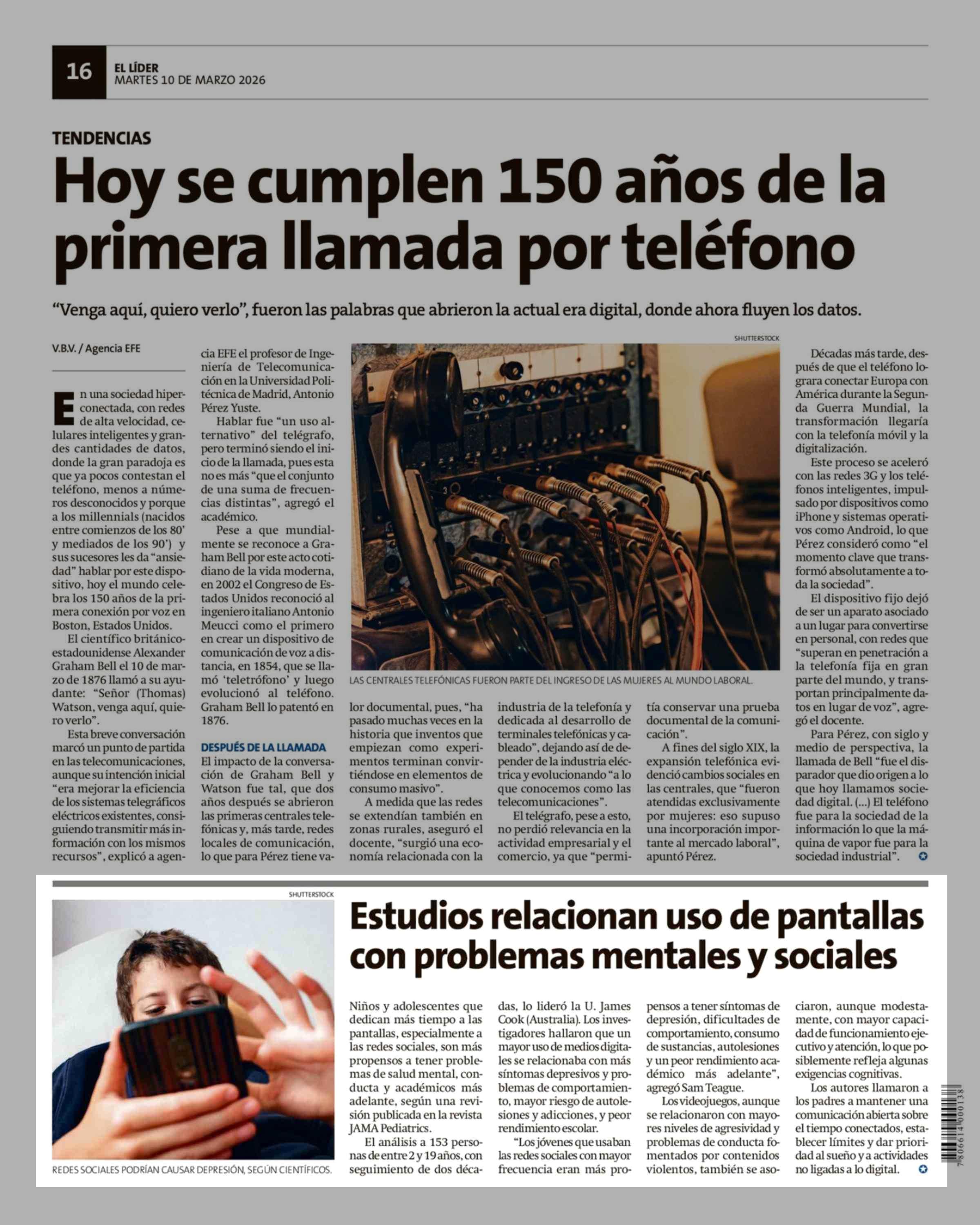 Estudios relacionan uso de pantallas con problemas mentales y sociales 10-03-2026 El Líder |
