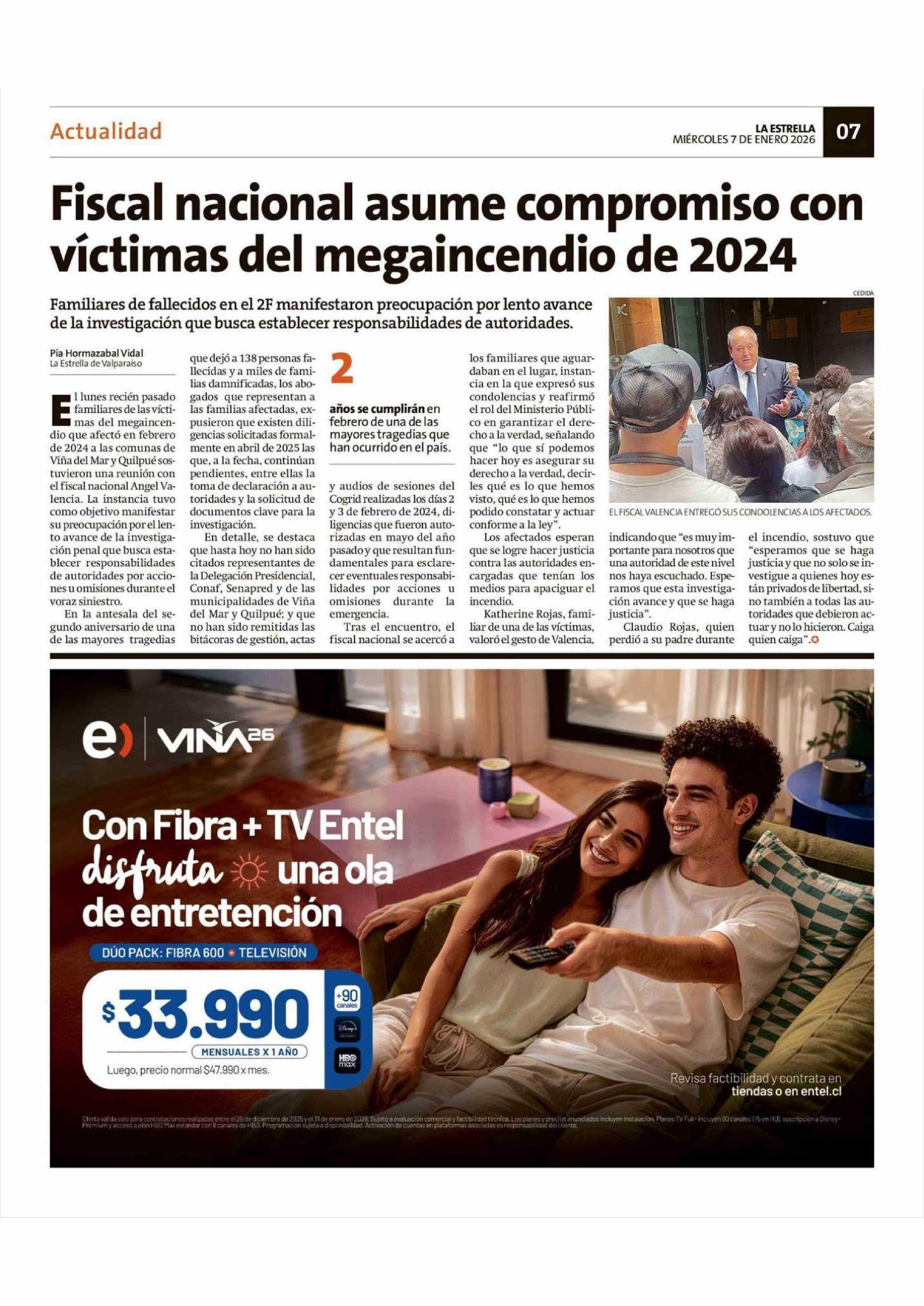 Fiscal nacional asume compromiso con víctimas del megaincendio de 2024 07-01-2026 La Estrella de Valparaíso |