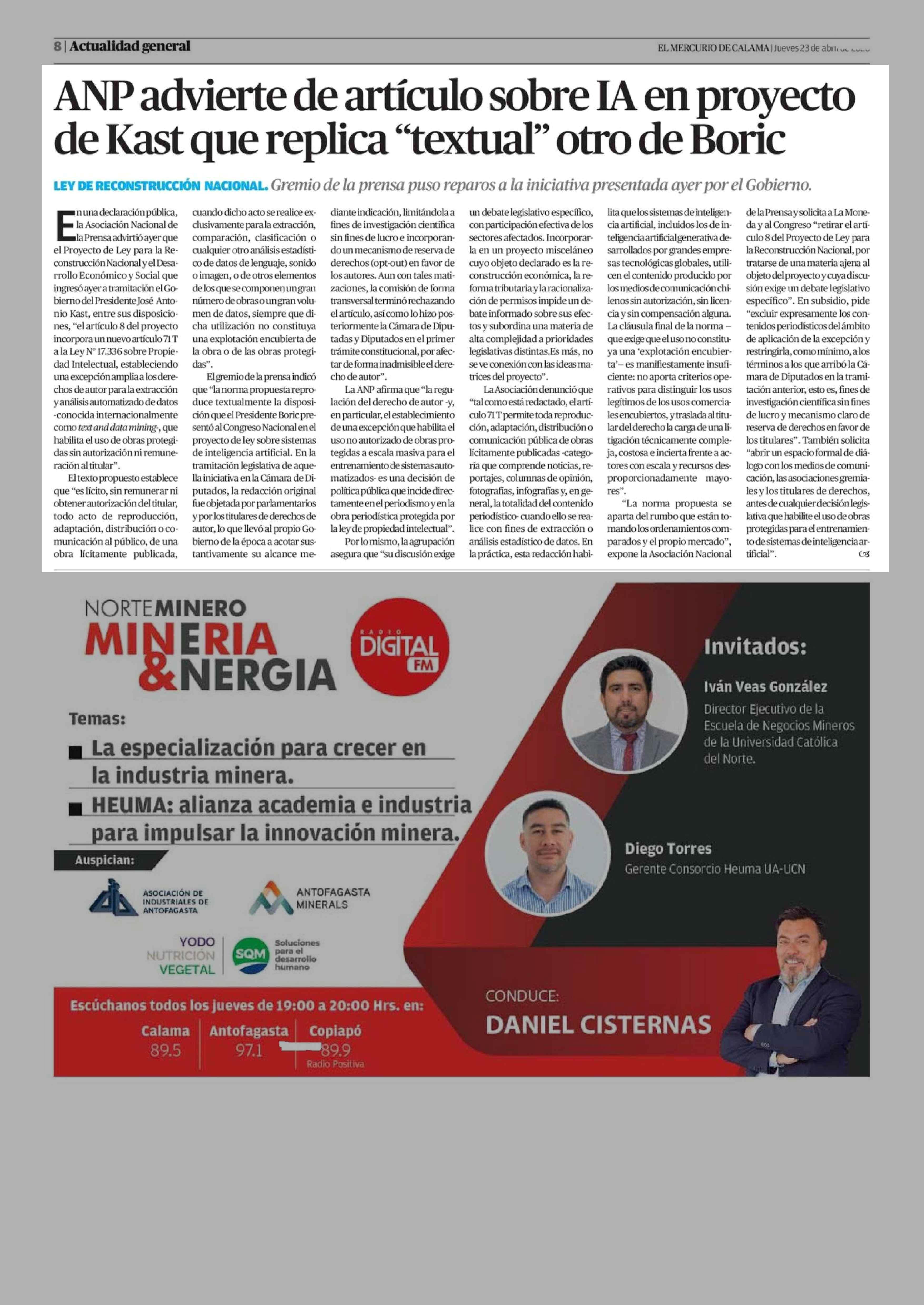 Título: ANP advierte de artículo sobre IA en proyecto de Kast que replica "textual" otro de Boric