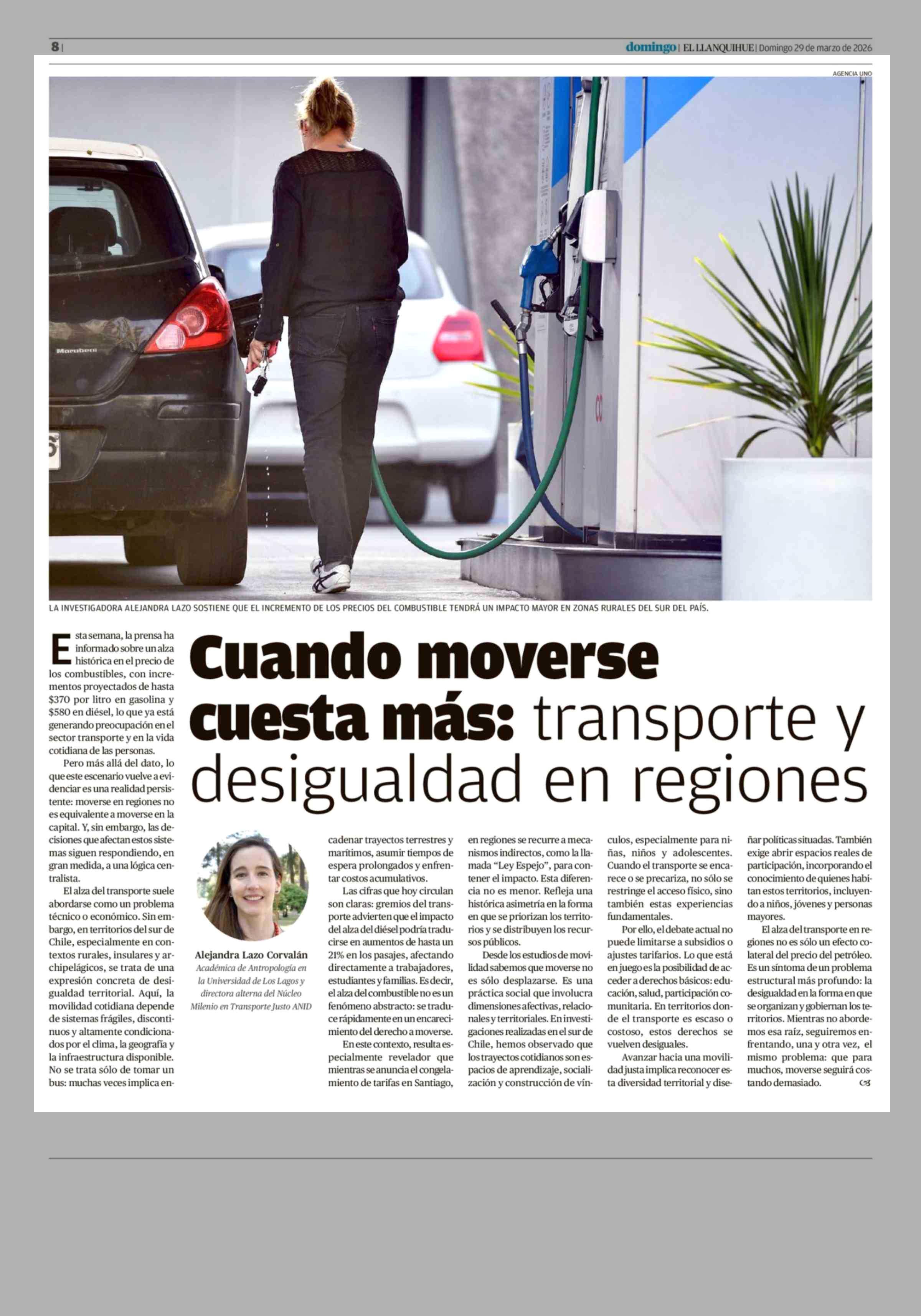 Título: Columnas de Opinión: Cuando moverse cuesta más: transporte y desigualdad en regiones