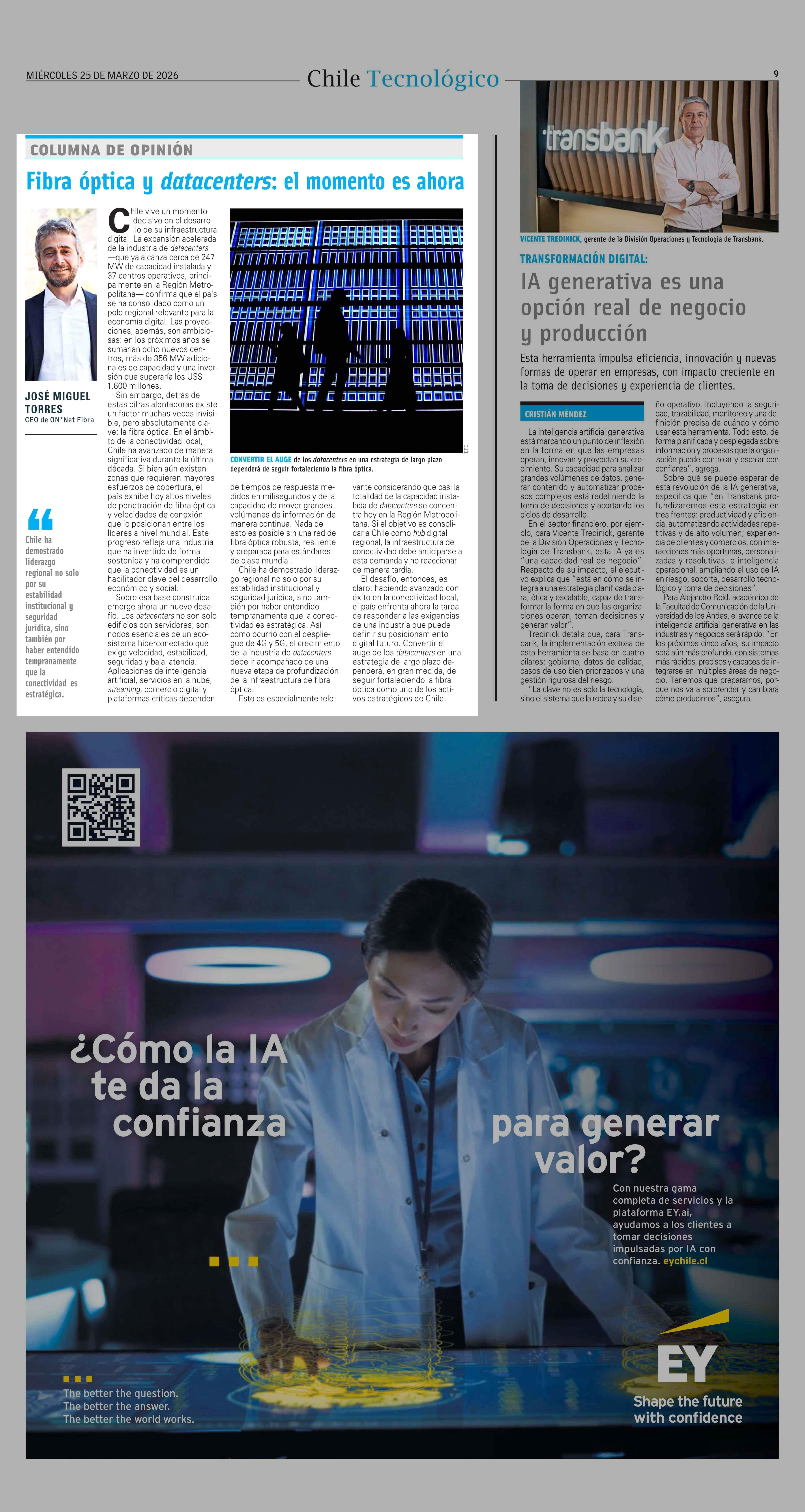Título: Columnas de Opinión: Fibra óptica y datacenters: el momento es ahora