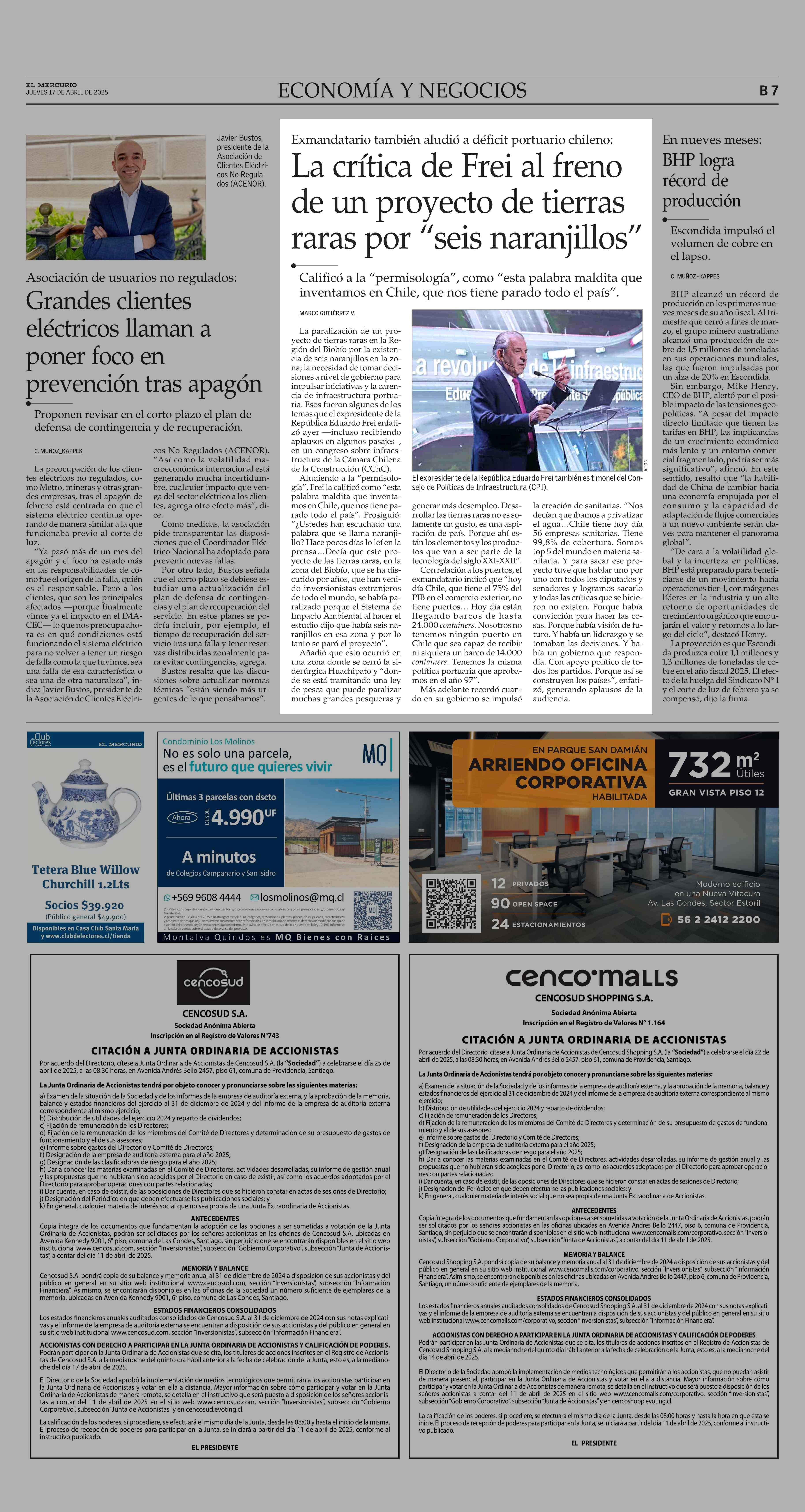 La crítica de Frei al freno de un proyecto de tierras raras por "seis naranjillos" 17-04-2025 El Mercurio |