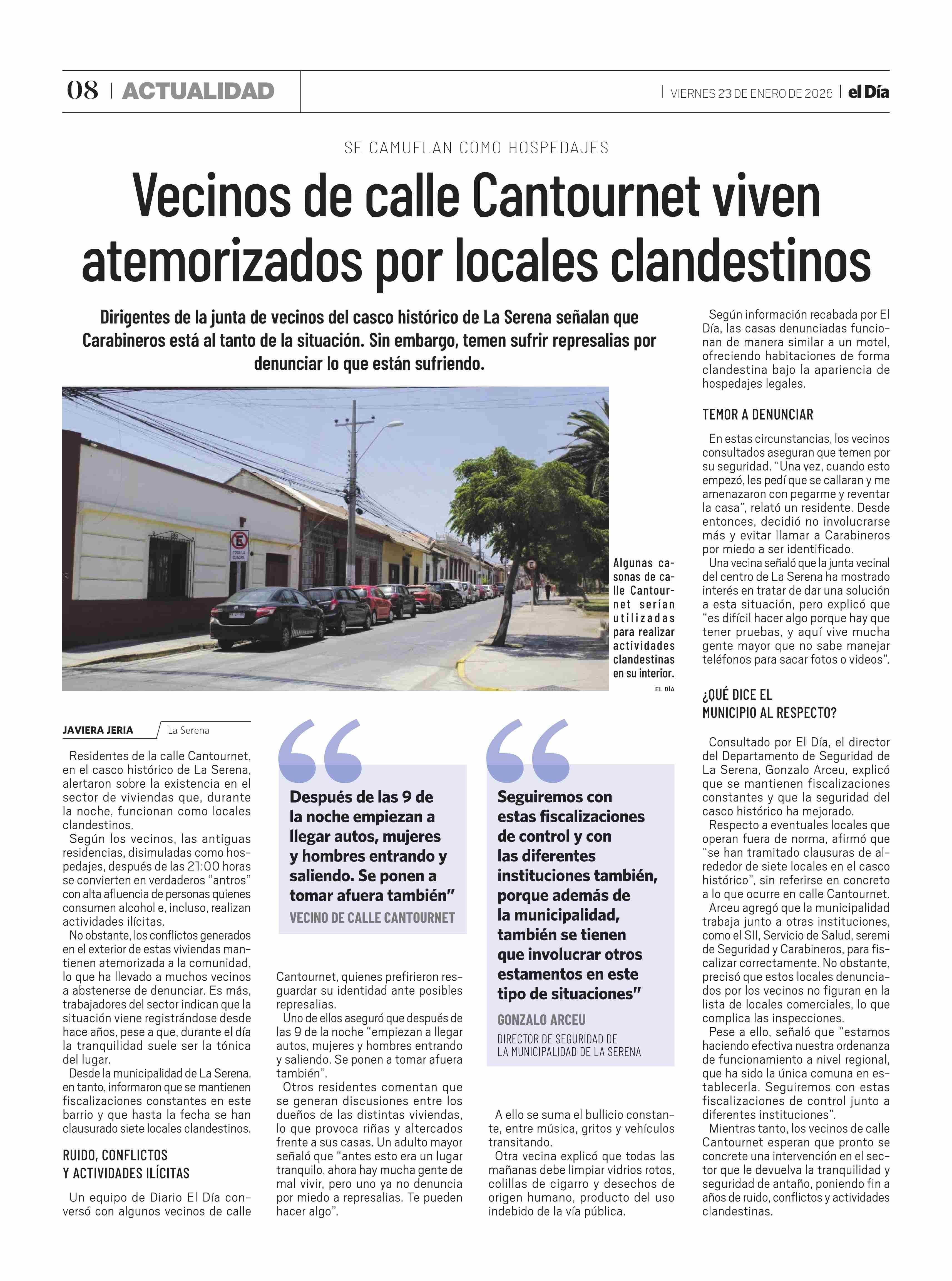 Vecinos de calle Cantournet viven atemorizados por locales clandestinos 23-01-2026 El Día |