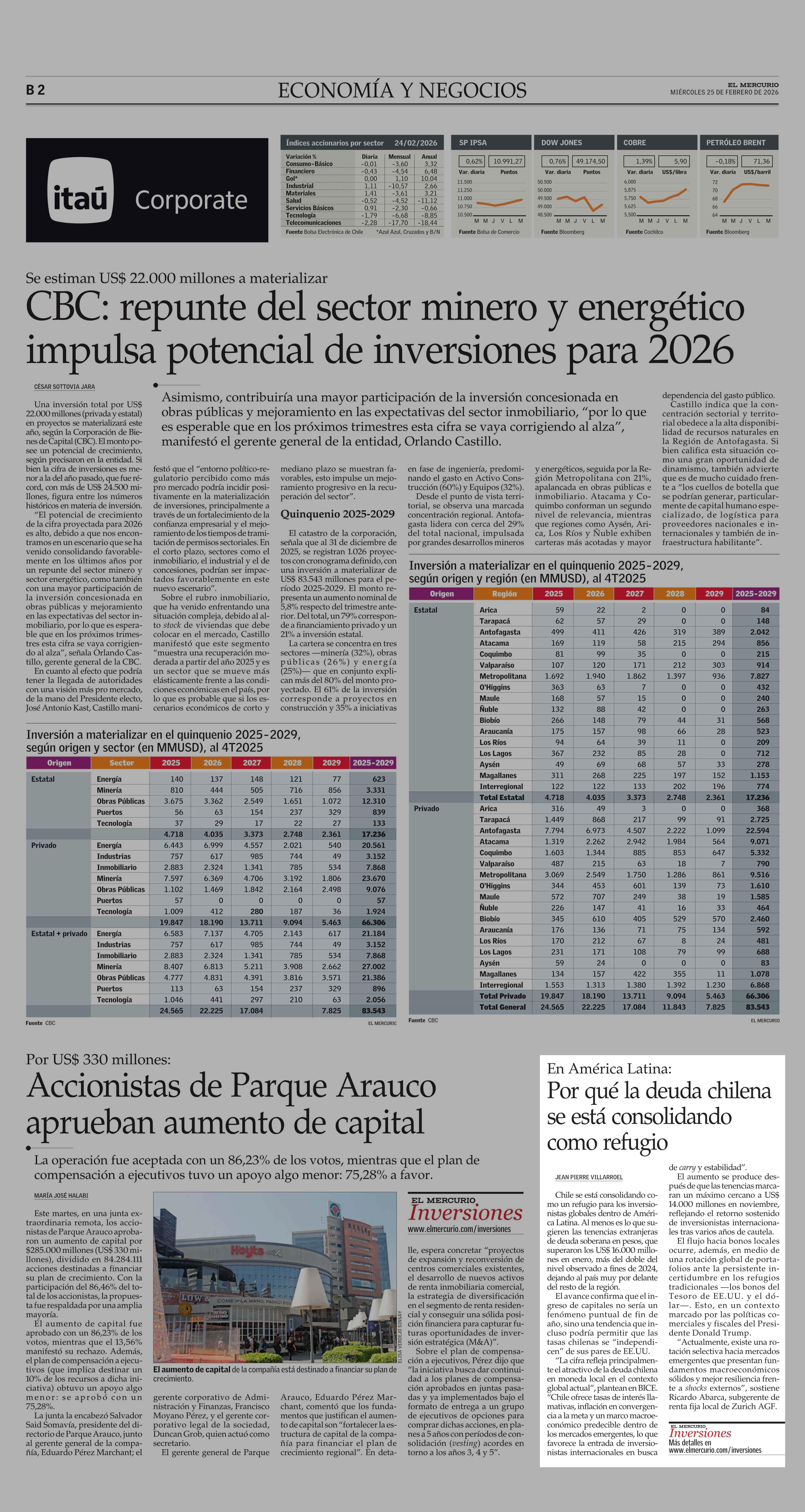 Por qué la deuda chilena se está consolidando como refugio 25-02-2026 El Mercurio |