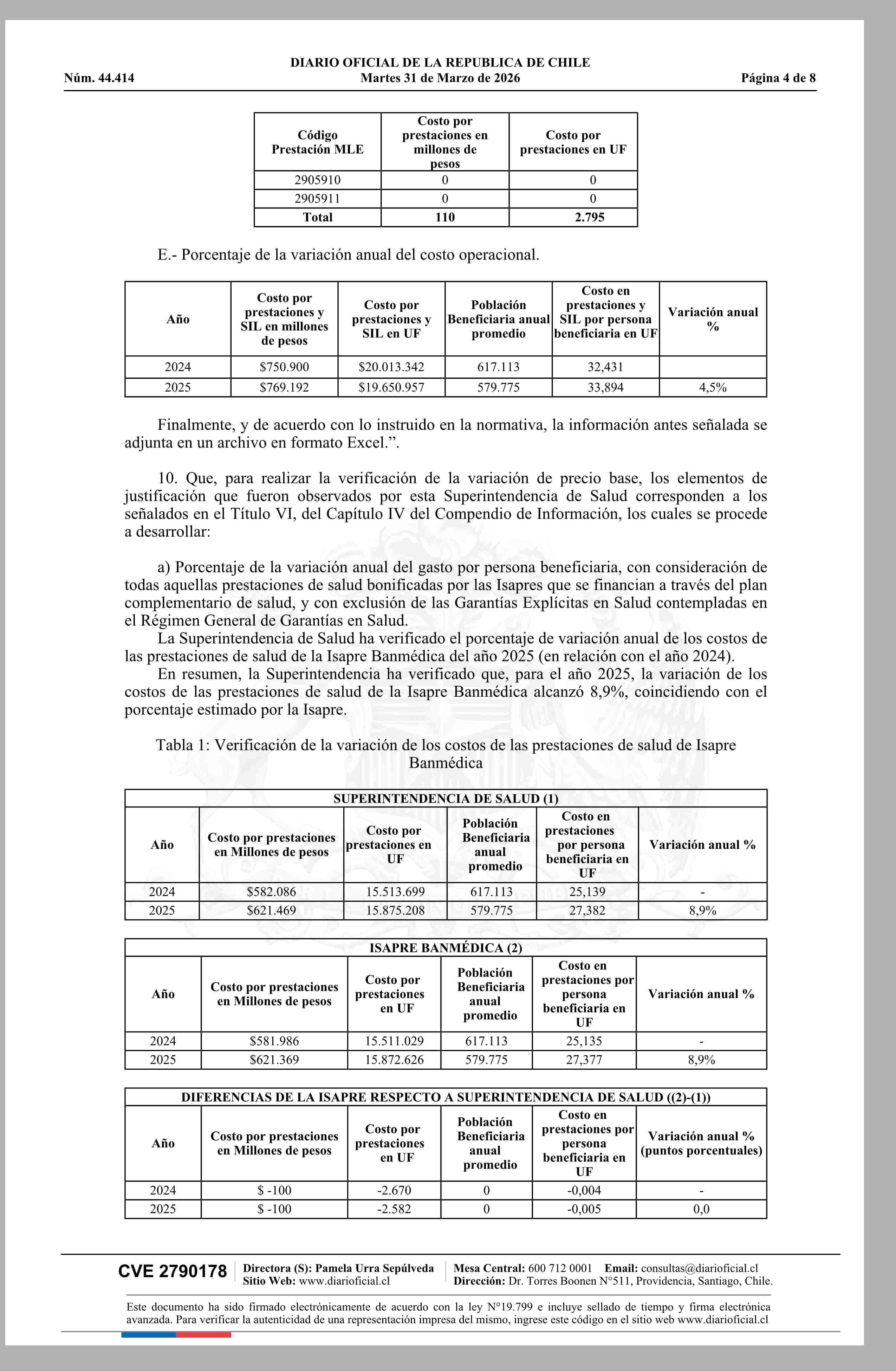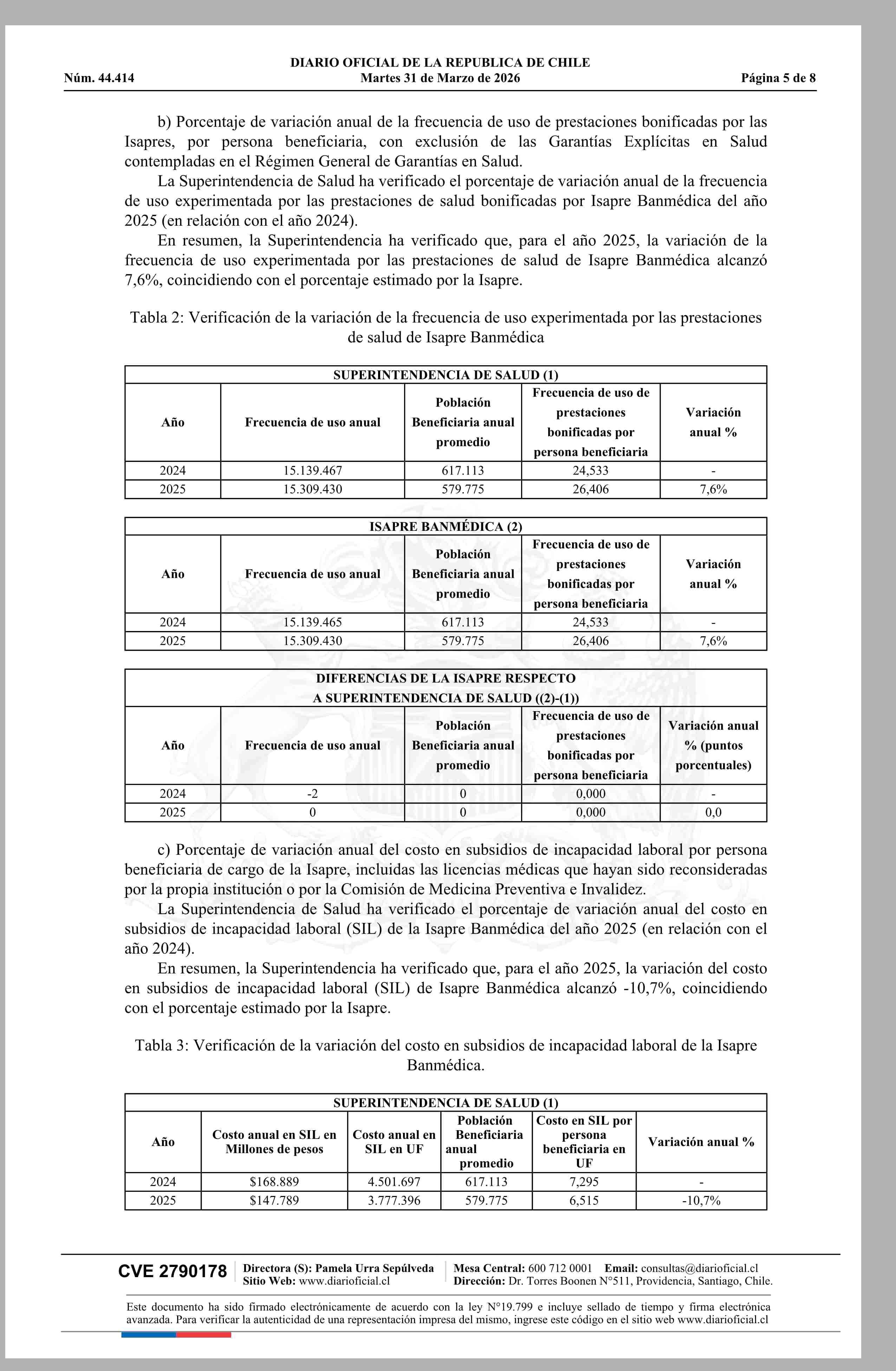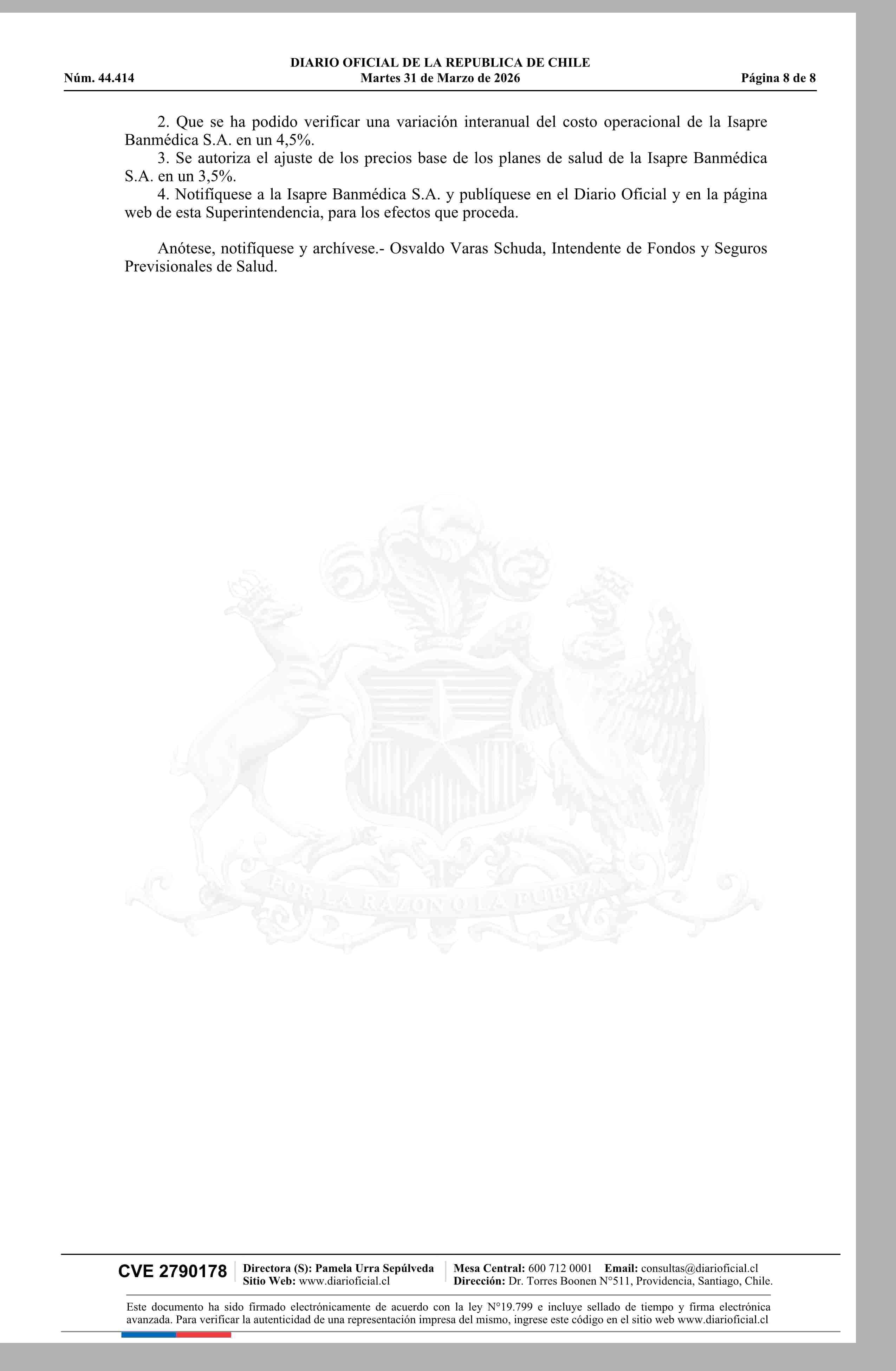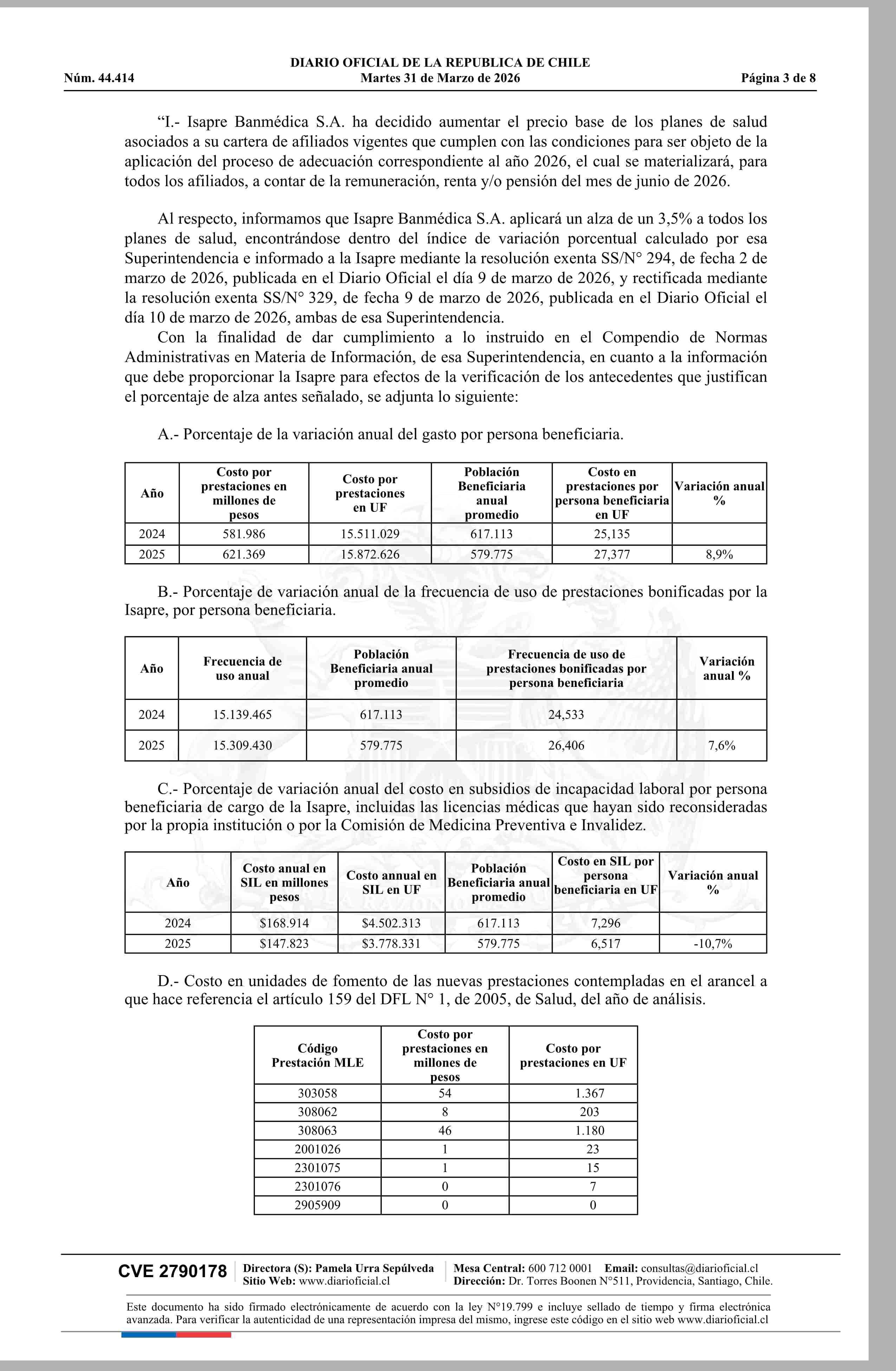 | Título: | Superintendencia de Salud / Intendencia de Fondos y Seguros Previsionales de Salud AUTORIZA EL AJUSTE DE LOS PRECIOS BASE DE LOS PLANES DE SALUD DE LA ISAPRE BANMÉDICA S.A. (Resolución) |