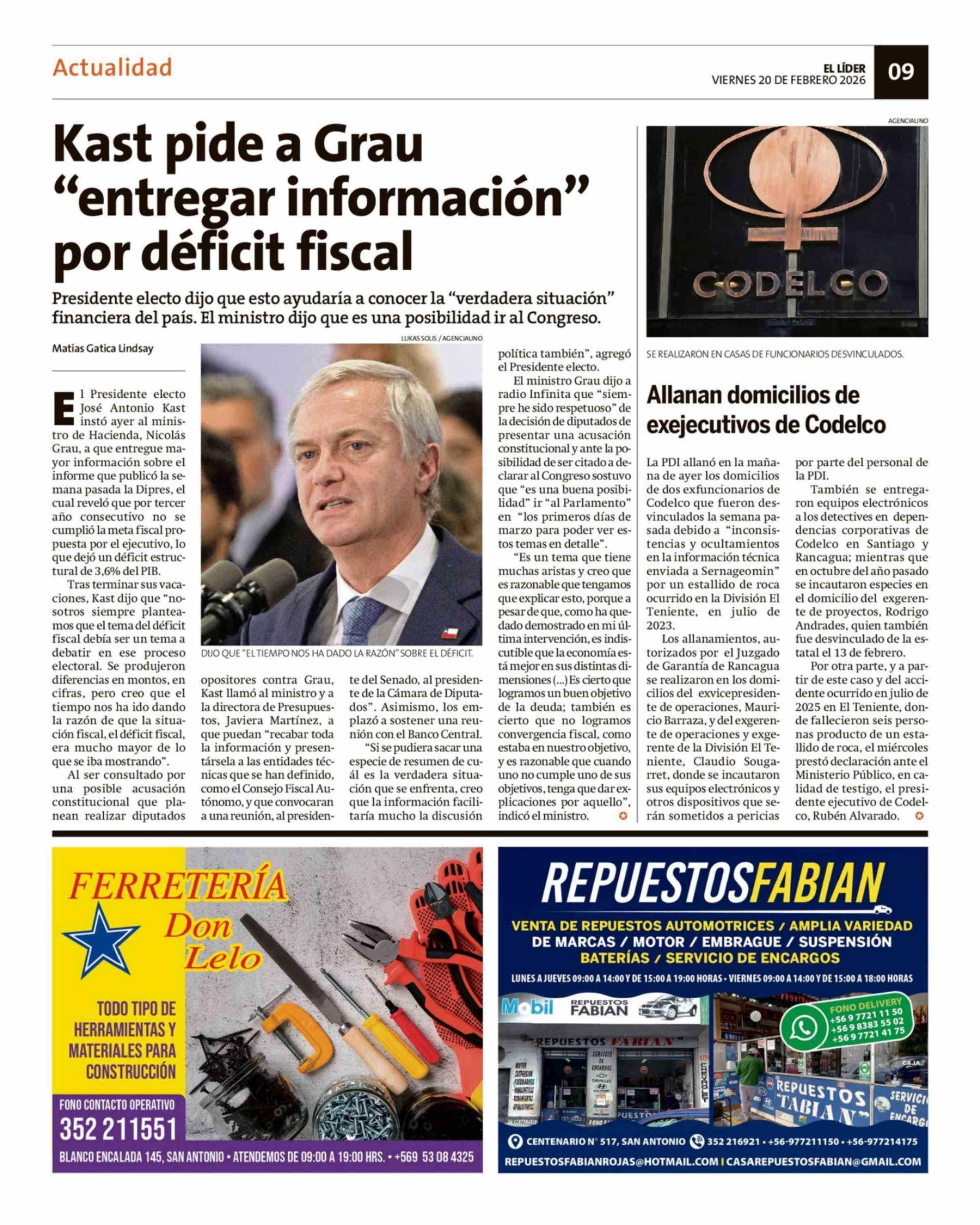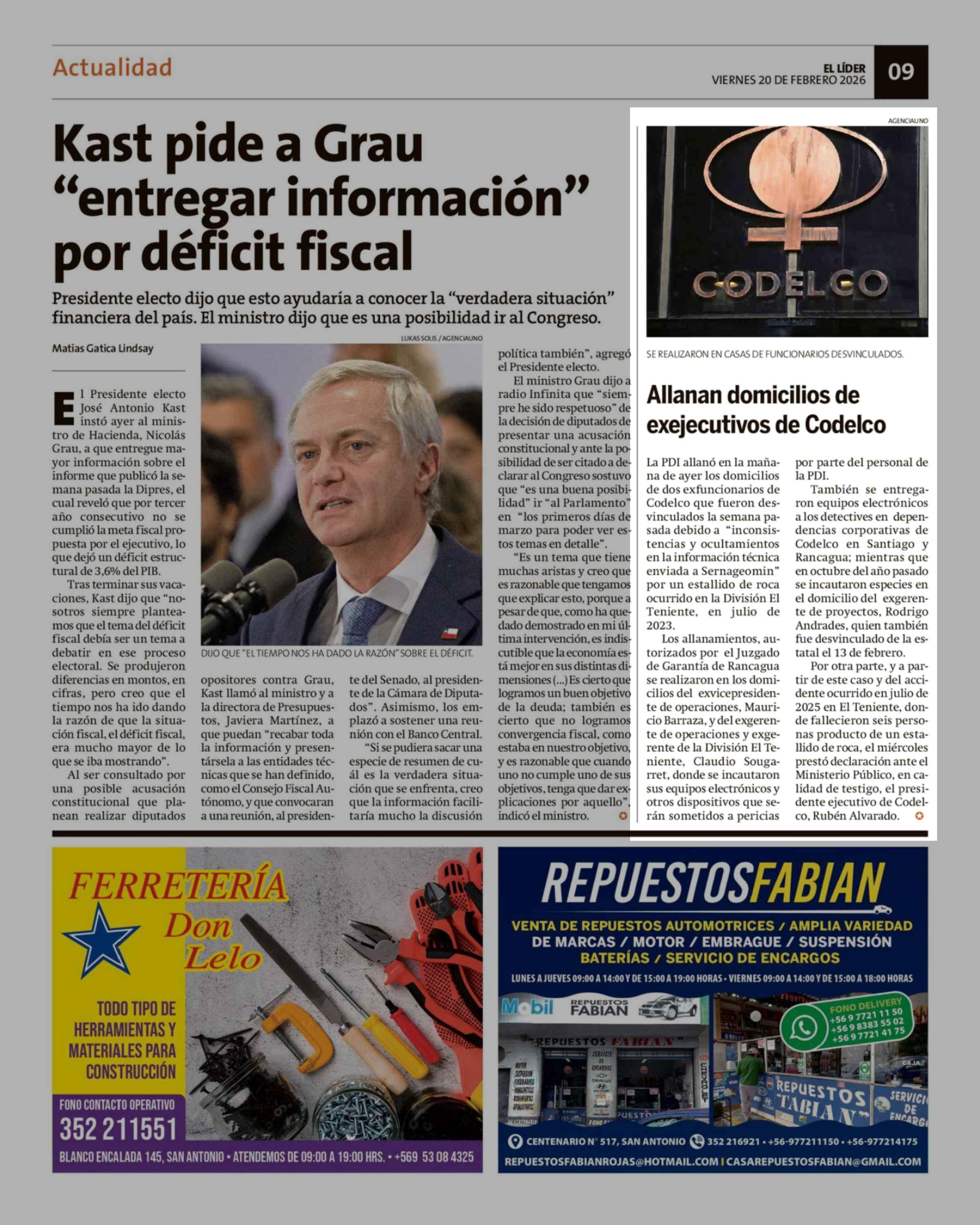 Allanan domicilios de exejecutivos de Codelco 20-02-2026 El Líder |