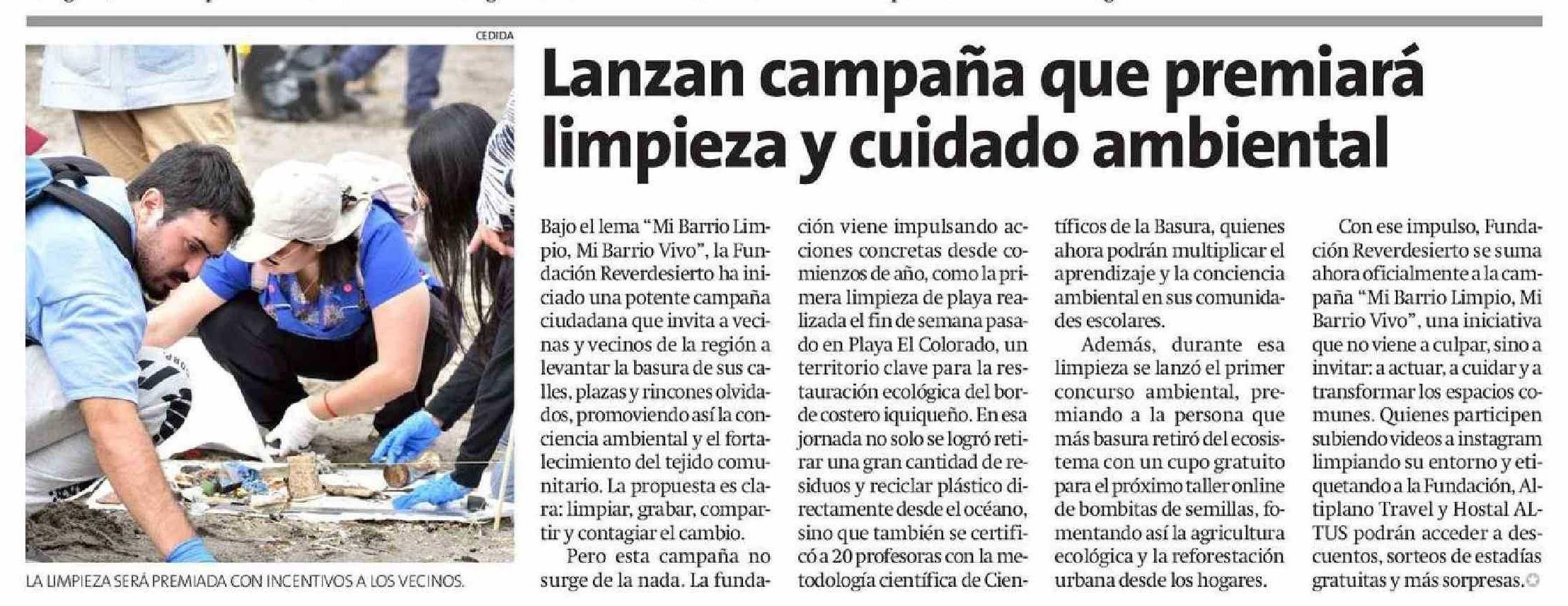 - Lanzan campaña que premiará limpieza y cuidado ambiental 16-04-2025 La Estrella de Iquique |