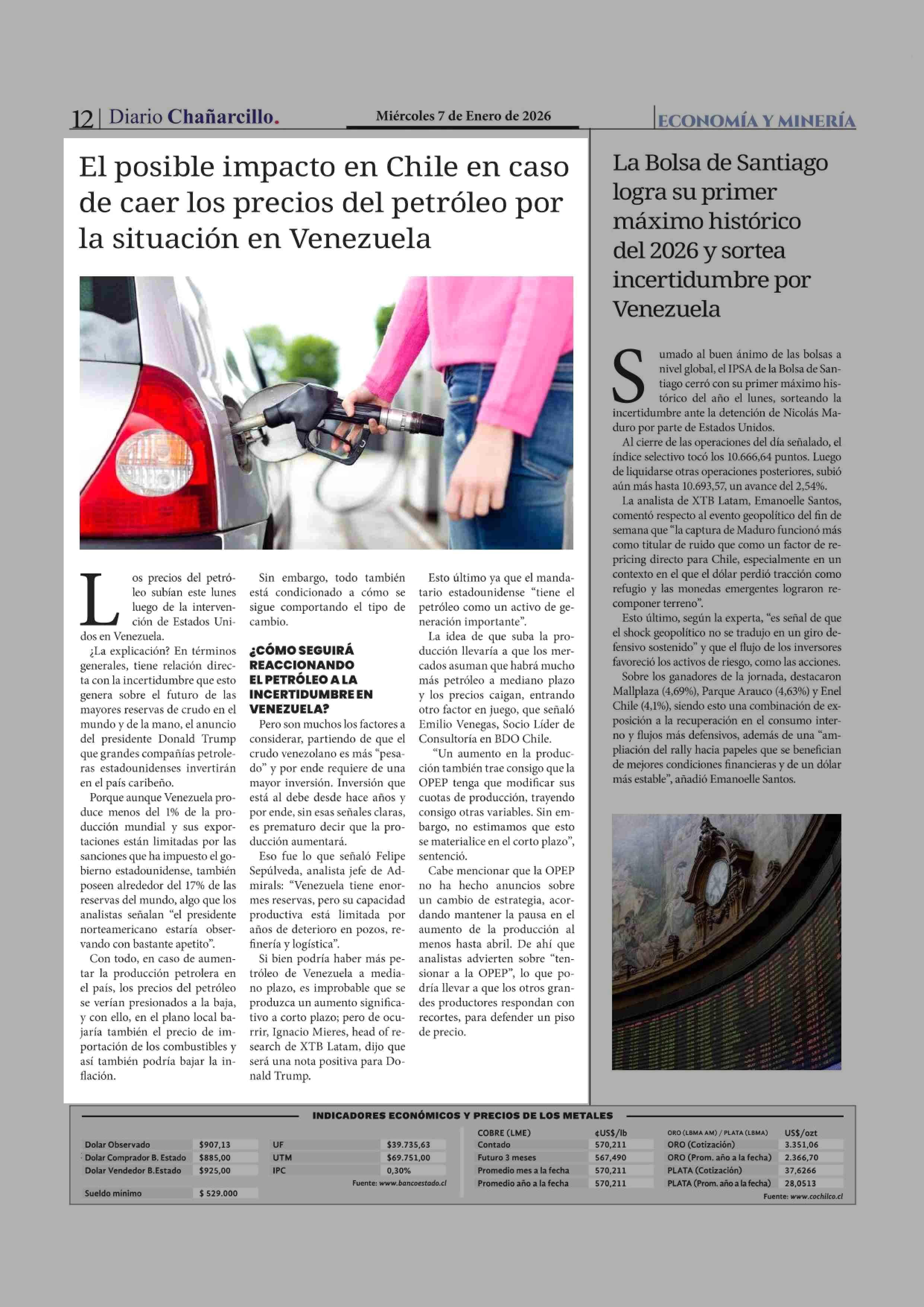 El posible impacto en Chile en caso de caer los precios del petróleo por la situación en Venezuela 07-01-2026 Diario Chañarcillo |