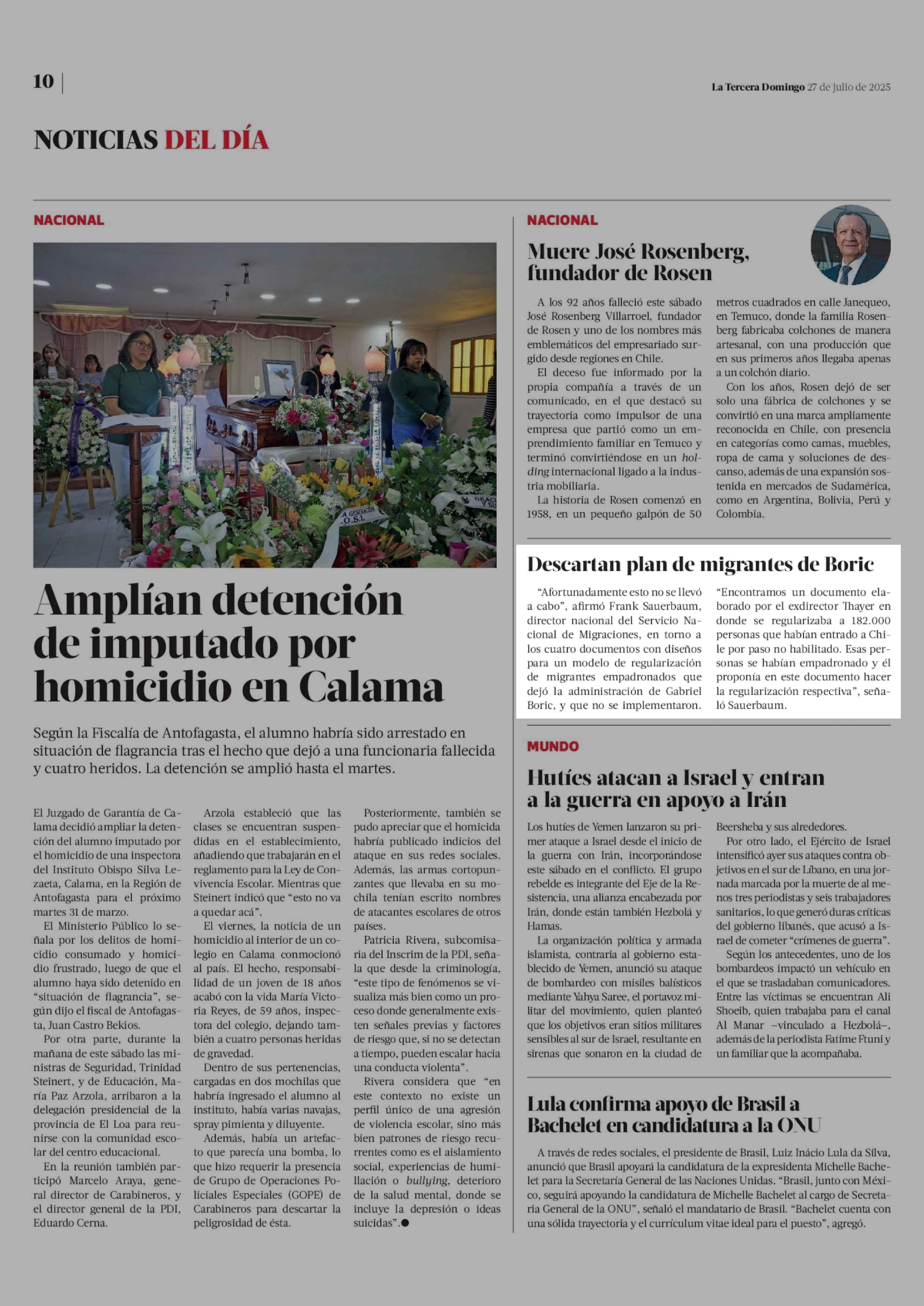 Descartan plan de migrantes de Boric 29-03-2026 La Tercera |