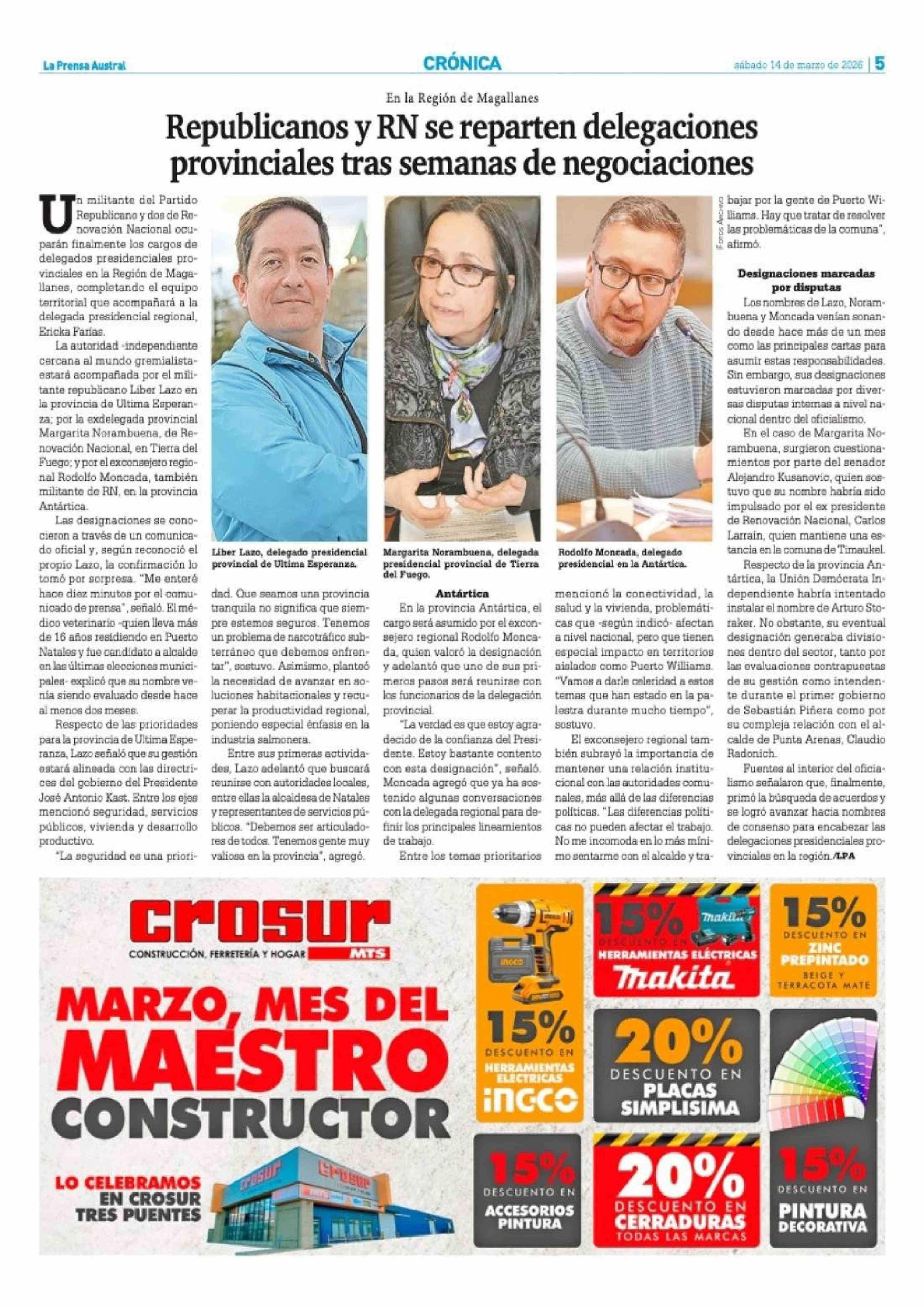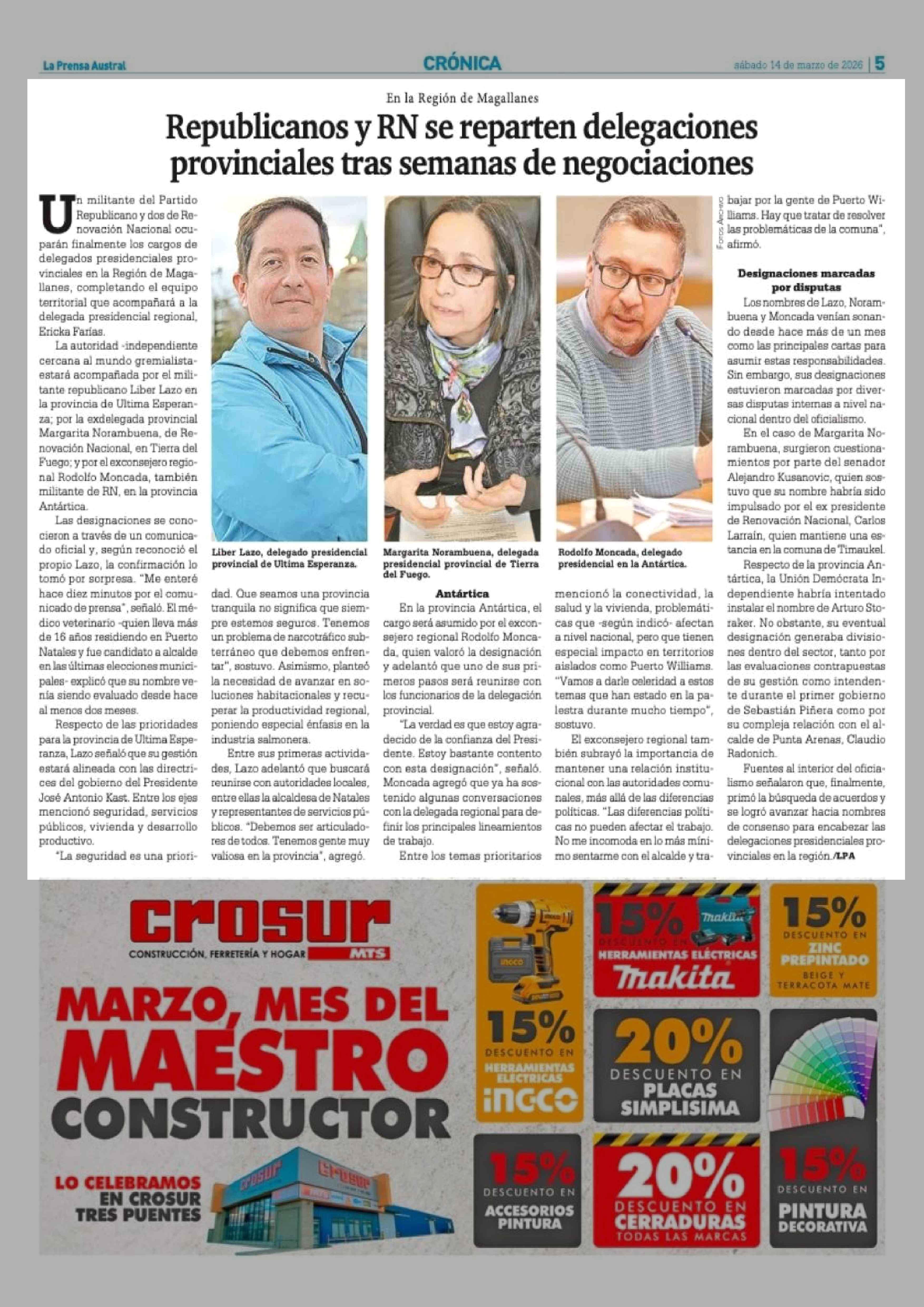 Republicanos y RN se reparten delegaciones provinciales tras semanas de negociaciones 14-03-2026 La Prensa Austral |