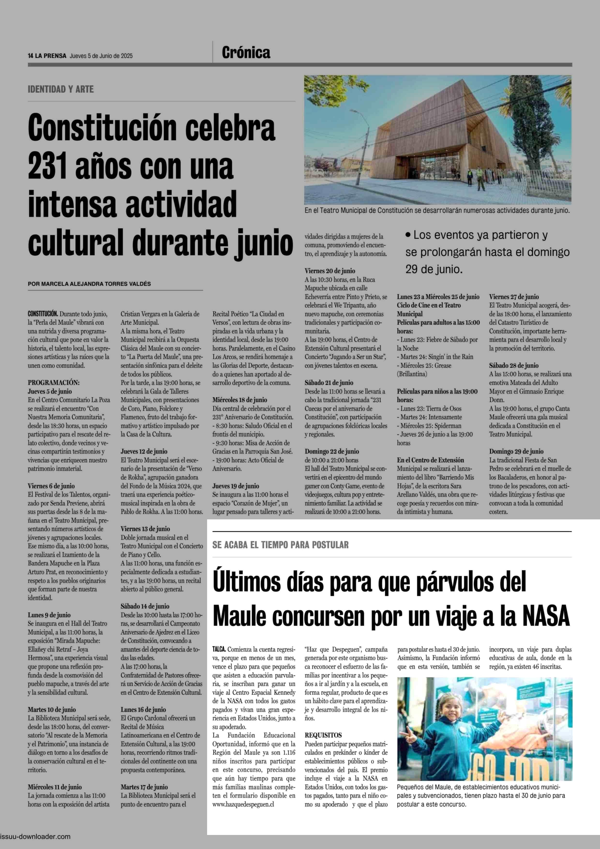 | Fecha: | 05-06-2025 | Sector: | Noticia general | Región: | Región del Maule |