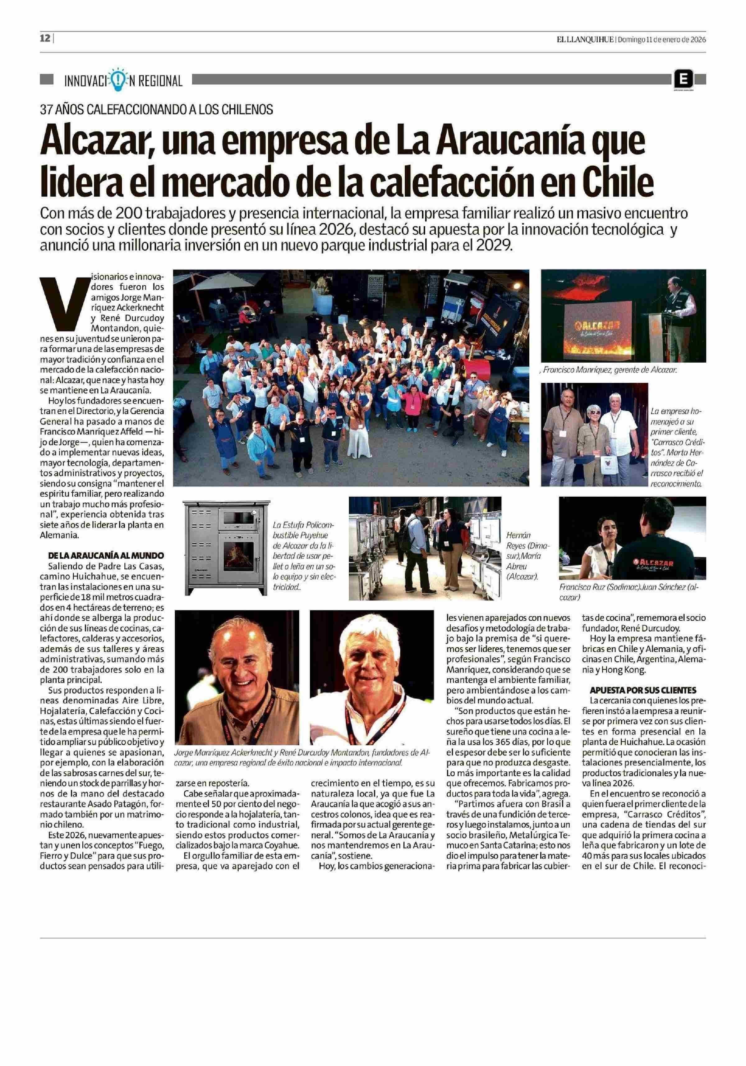Alcazar, una empresa de La Araucanía que lidera el mercado de la calefacción en Chile 11-01-2026 El Llanquihue |