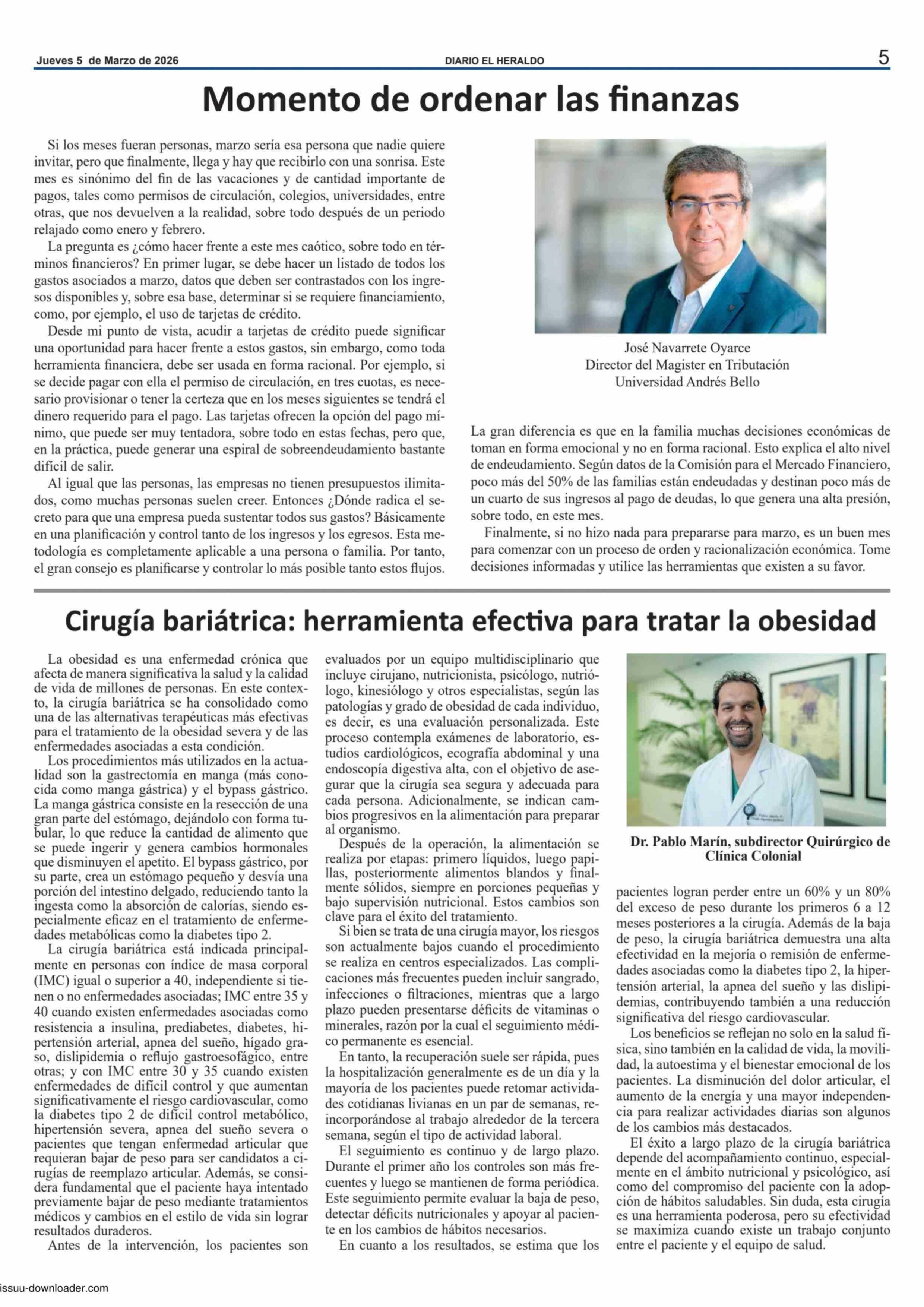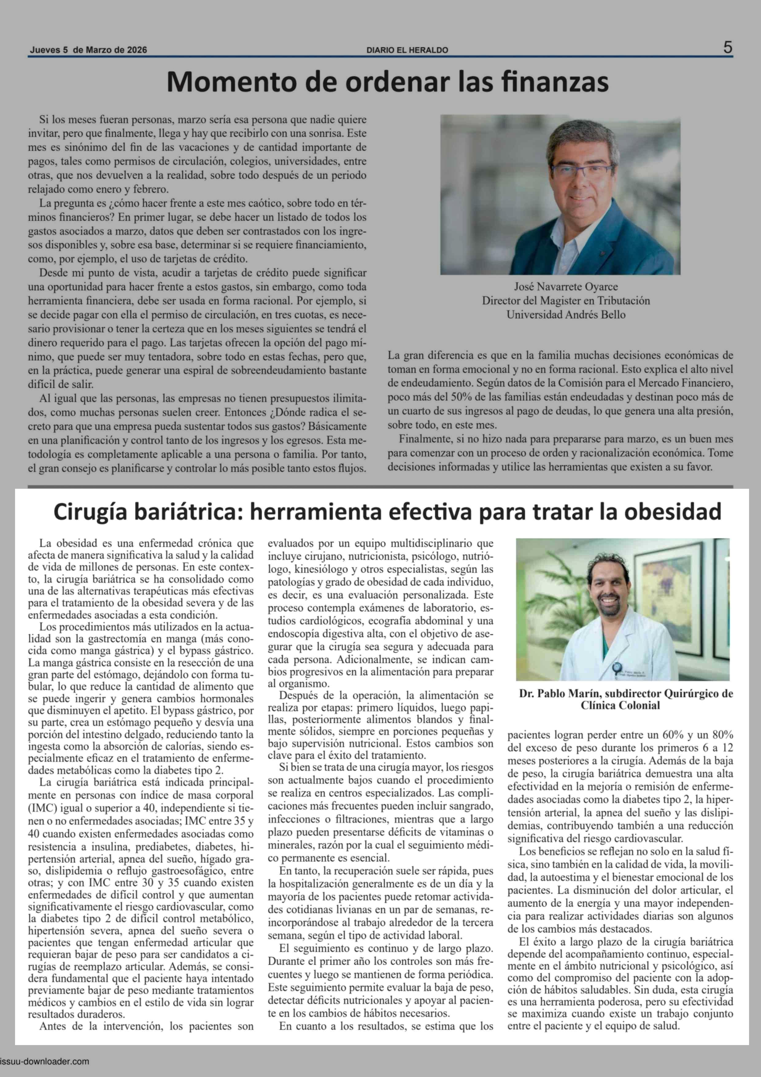 Columnas de Opinión: Cirugía bariátrica: herramienta efectiva para tratar la obesidad 05-03-2026 El Heraldo |