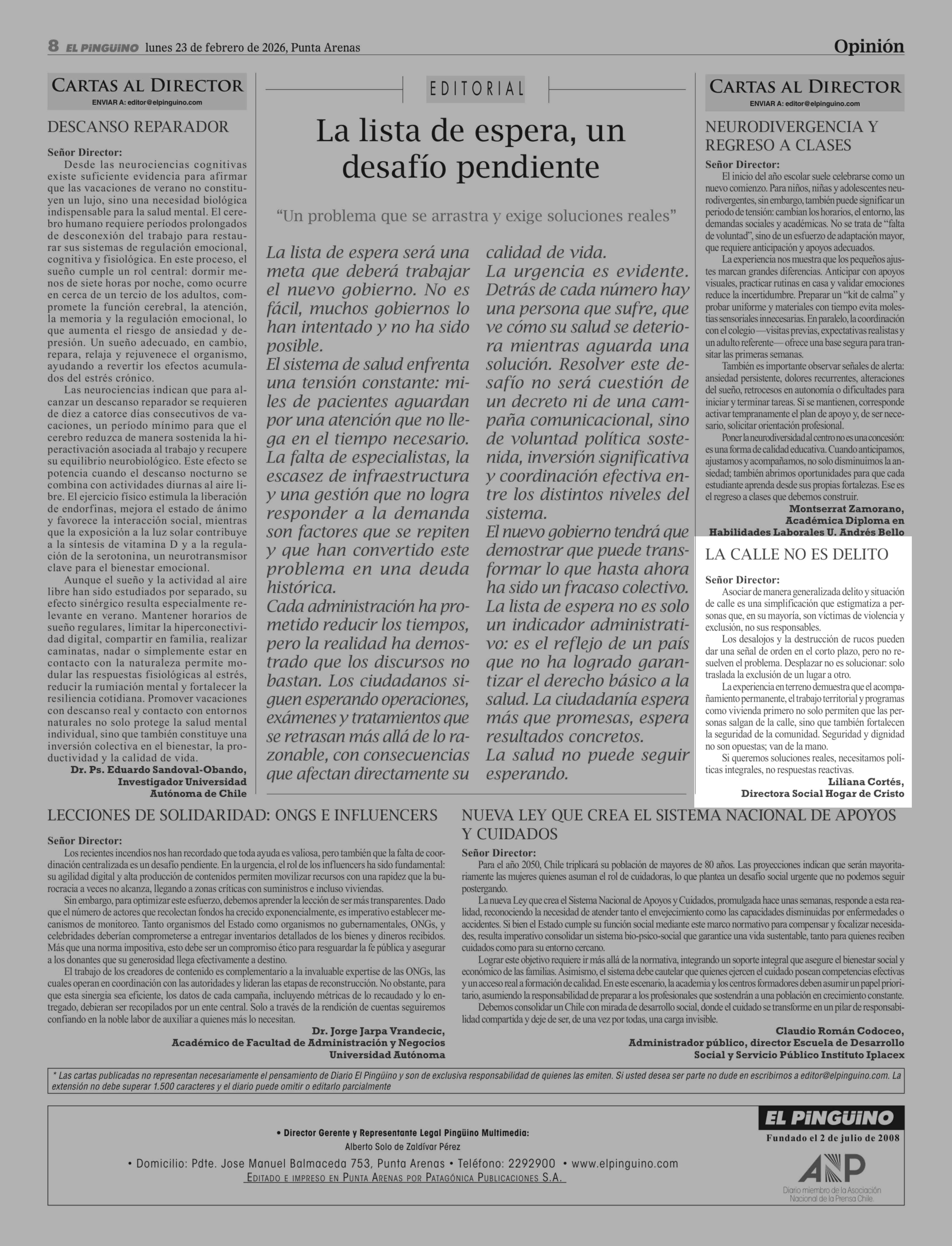 Cartas: LA CALLE NOES DELITO 23-02-2026 El Pingüino |