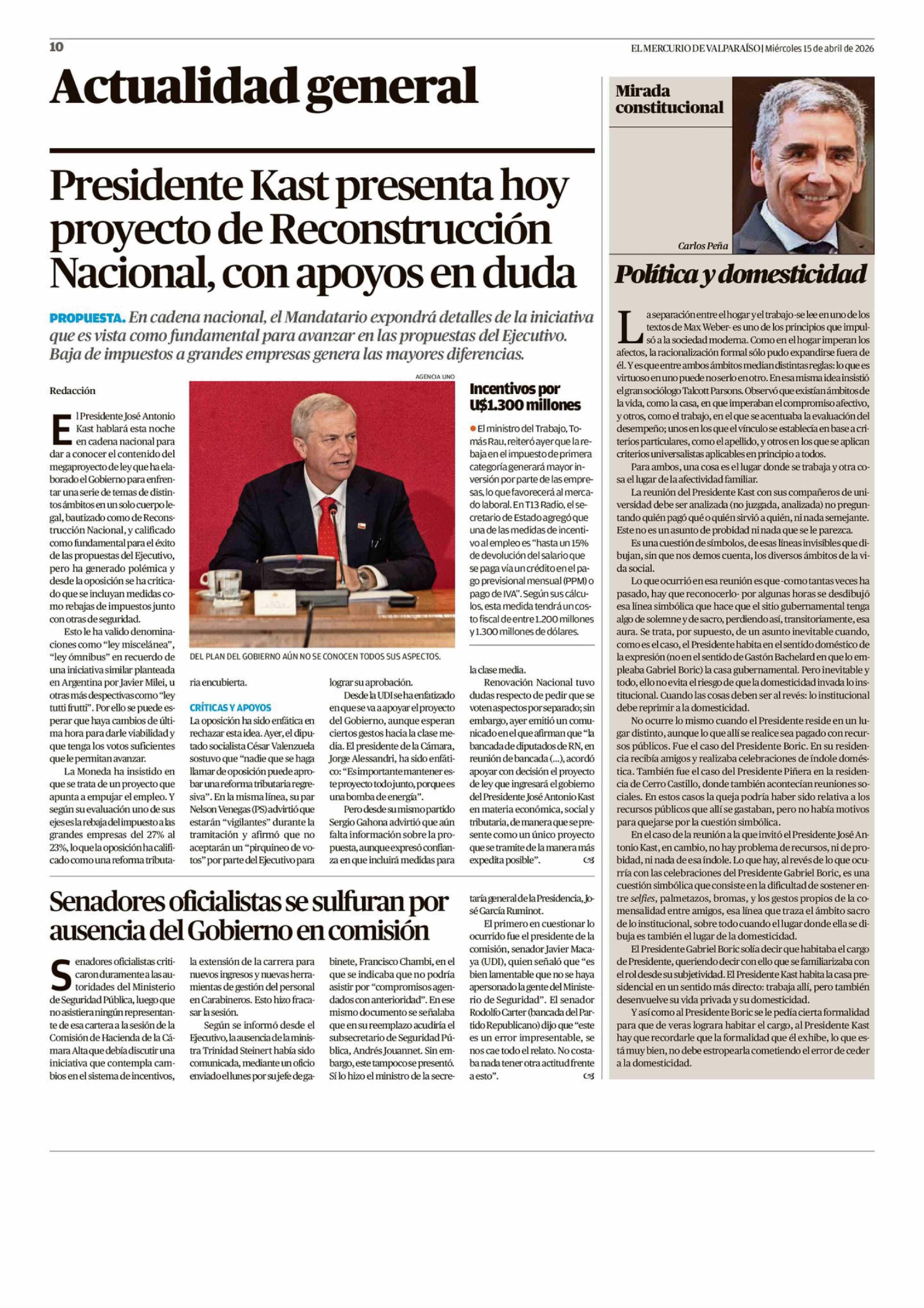 Título: Presidente Kast presenta hoy proyecto de Reconstrucción Nacional, con apoyos en duda