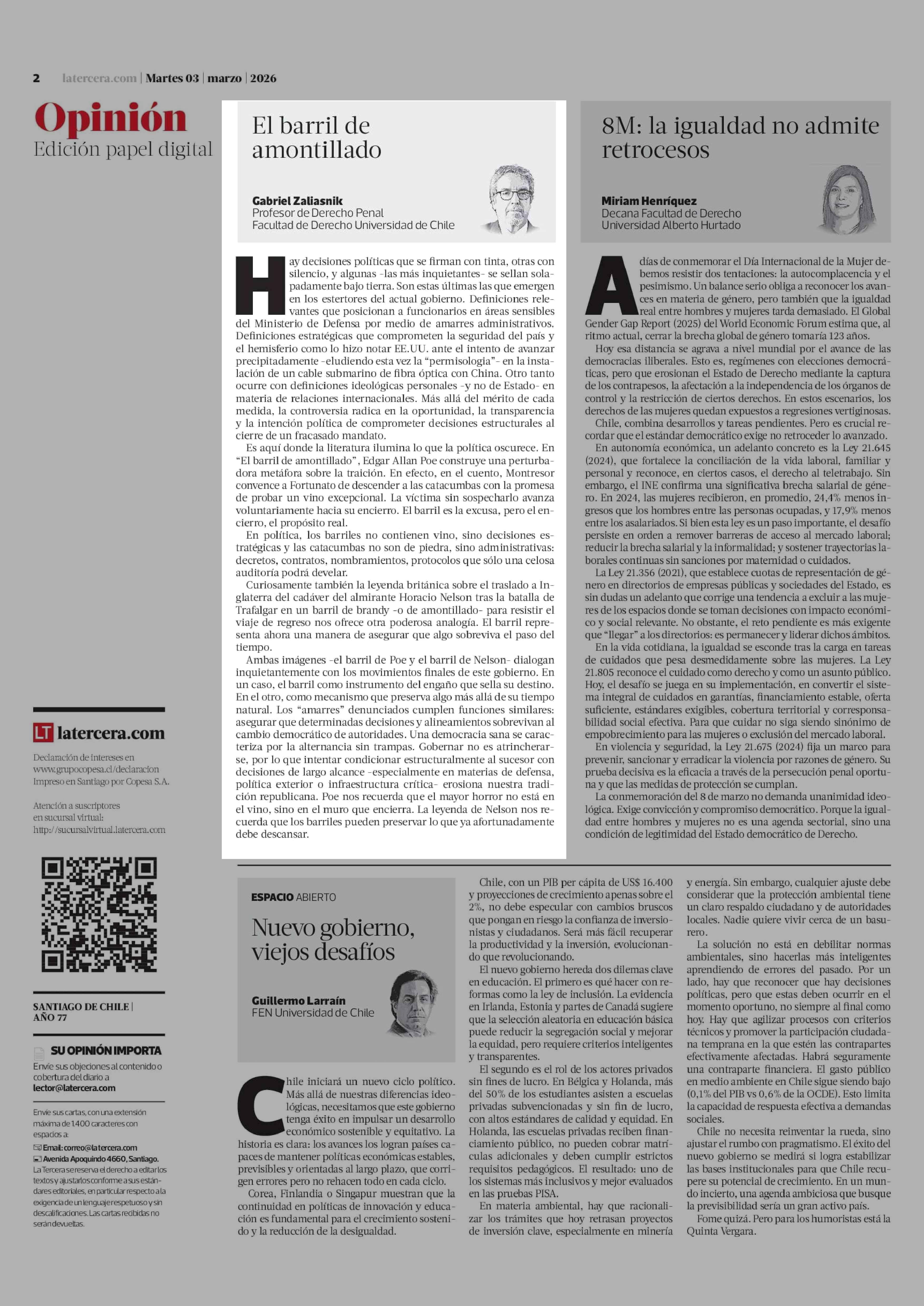 COLUMNAS DE OPINIÓN: El barril de amontillado 03-03-2026 La Tercera |