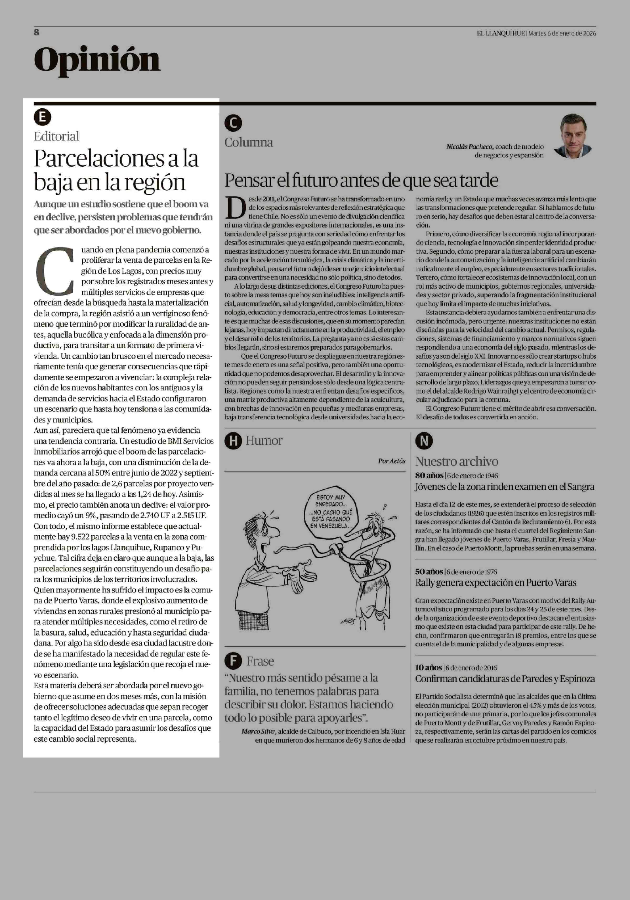 Editorial: Parcelaciones a la baja en la región 06-01-2026 El Llanquihue |