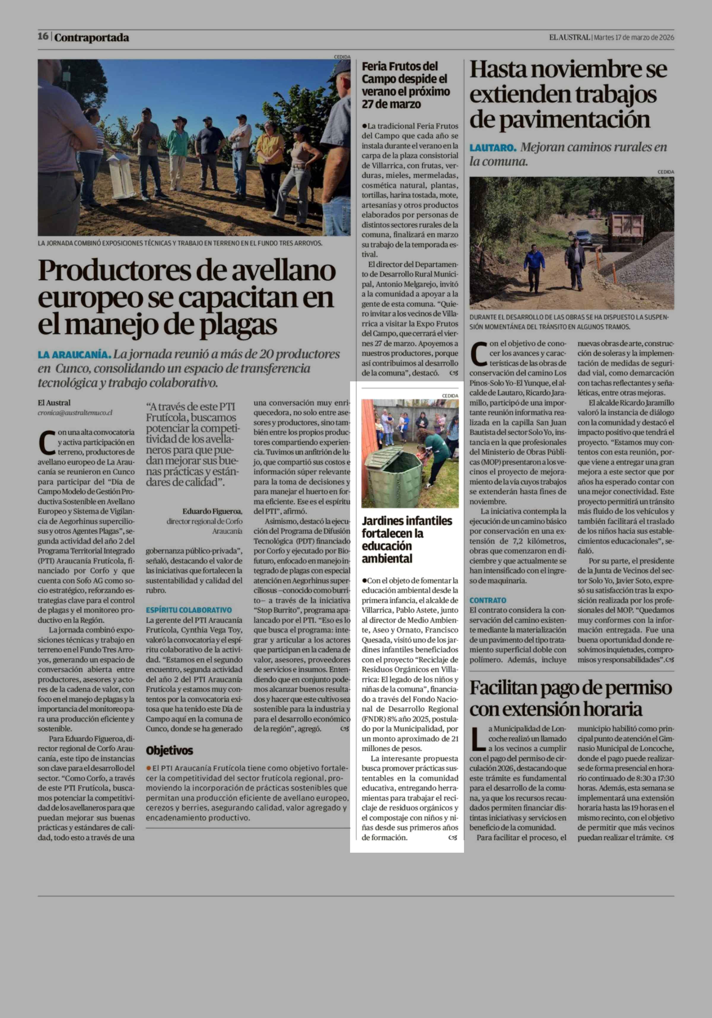 Fuente: El Austral de la Araucanía (El Austral de la Araucanía) Página(s): 16