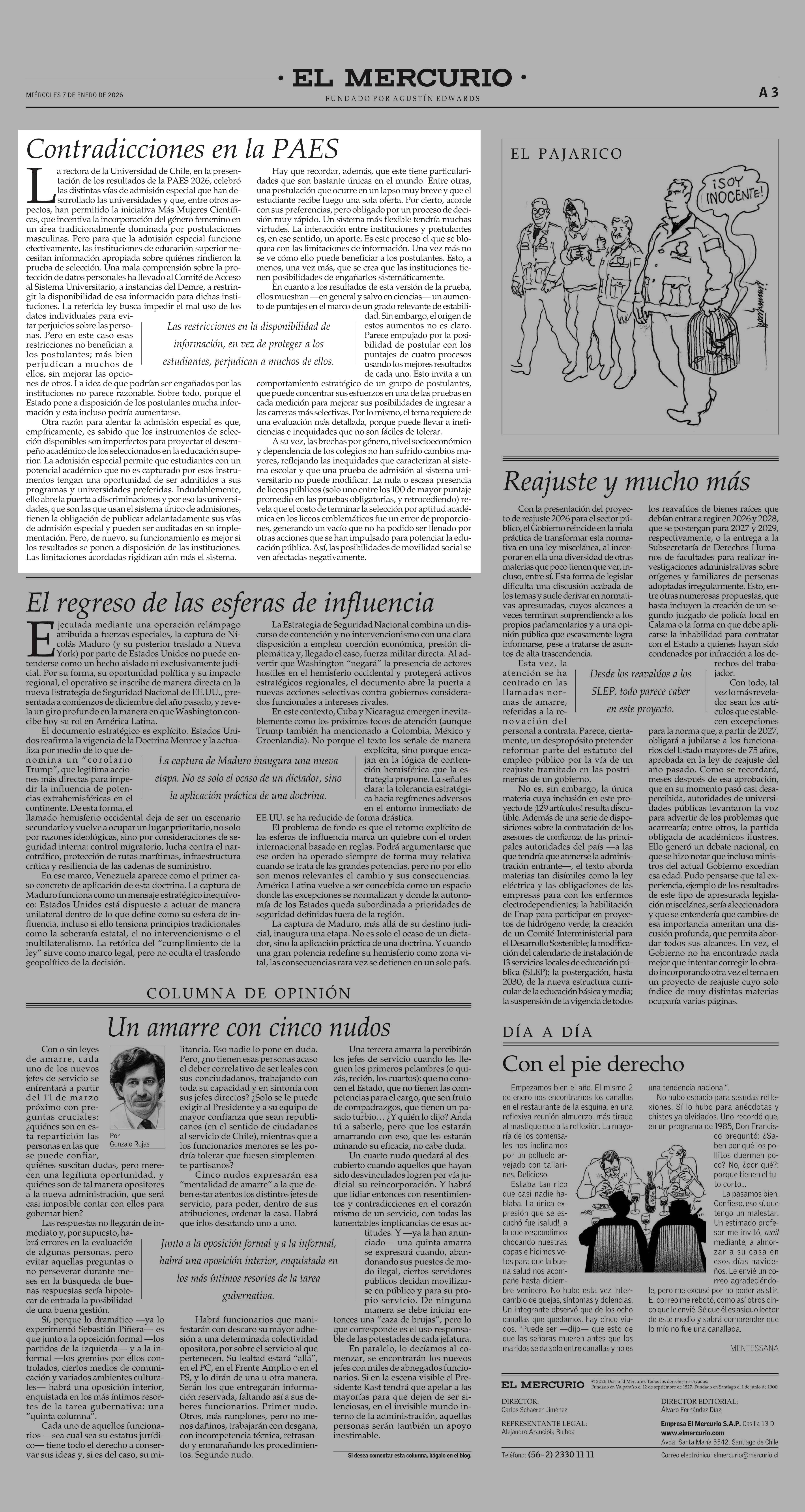 Editorial: Contradicciones en la PAES 07-01-2026 El Mercurio |
