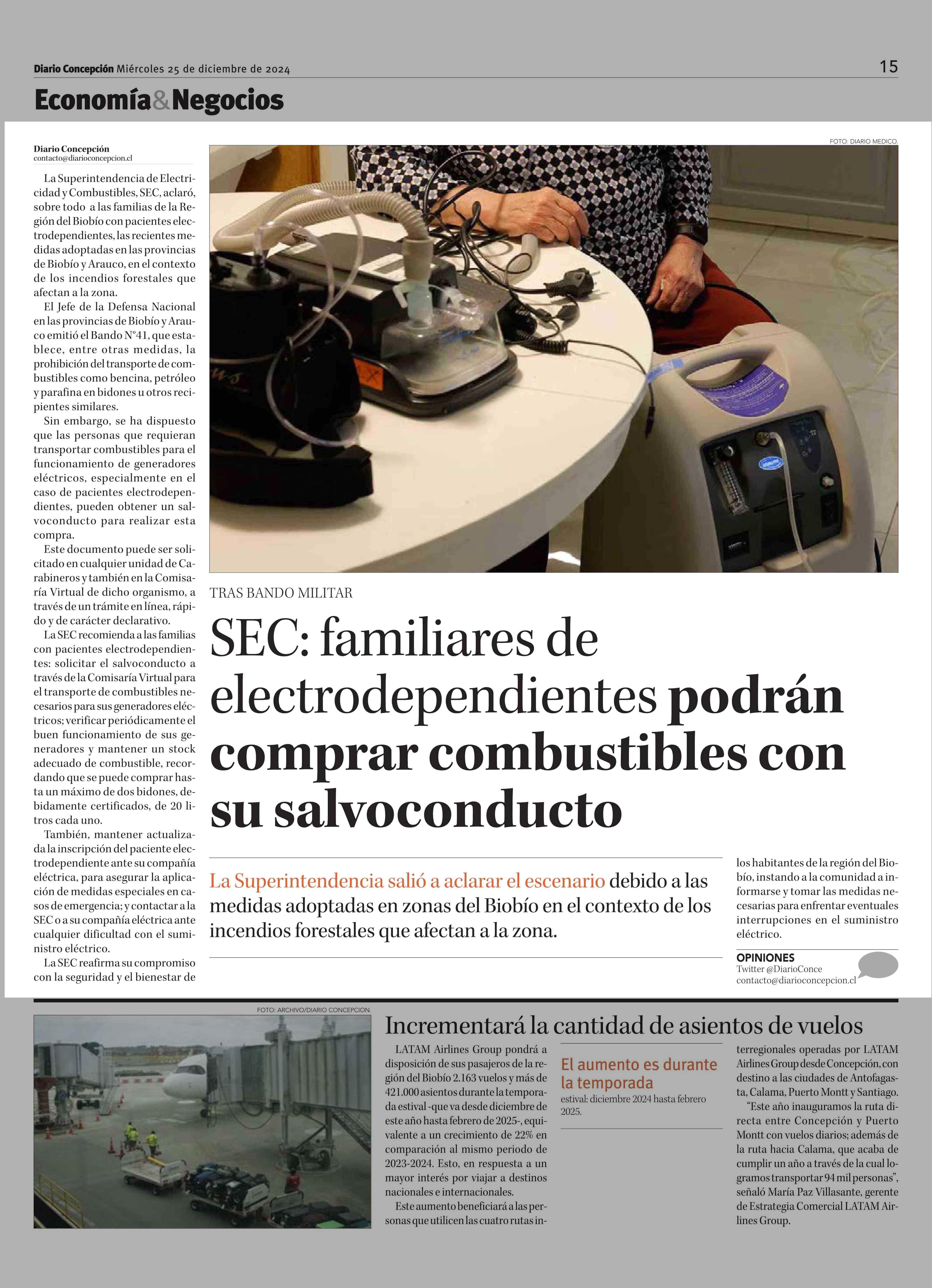 SEC: familiares de electrodependientes podrán comprar combustibles con su salvoconducto 25-12-2024 Diario Concepción |