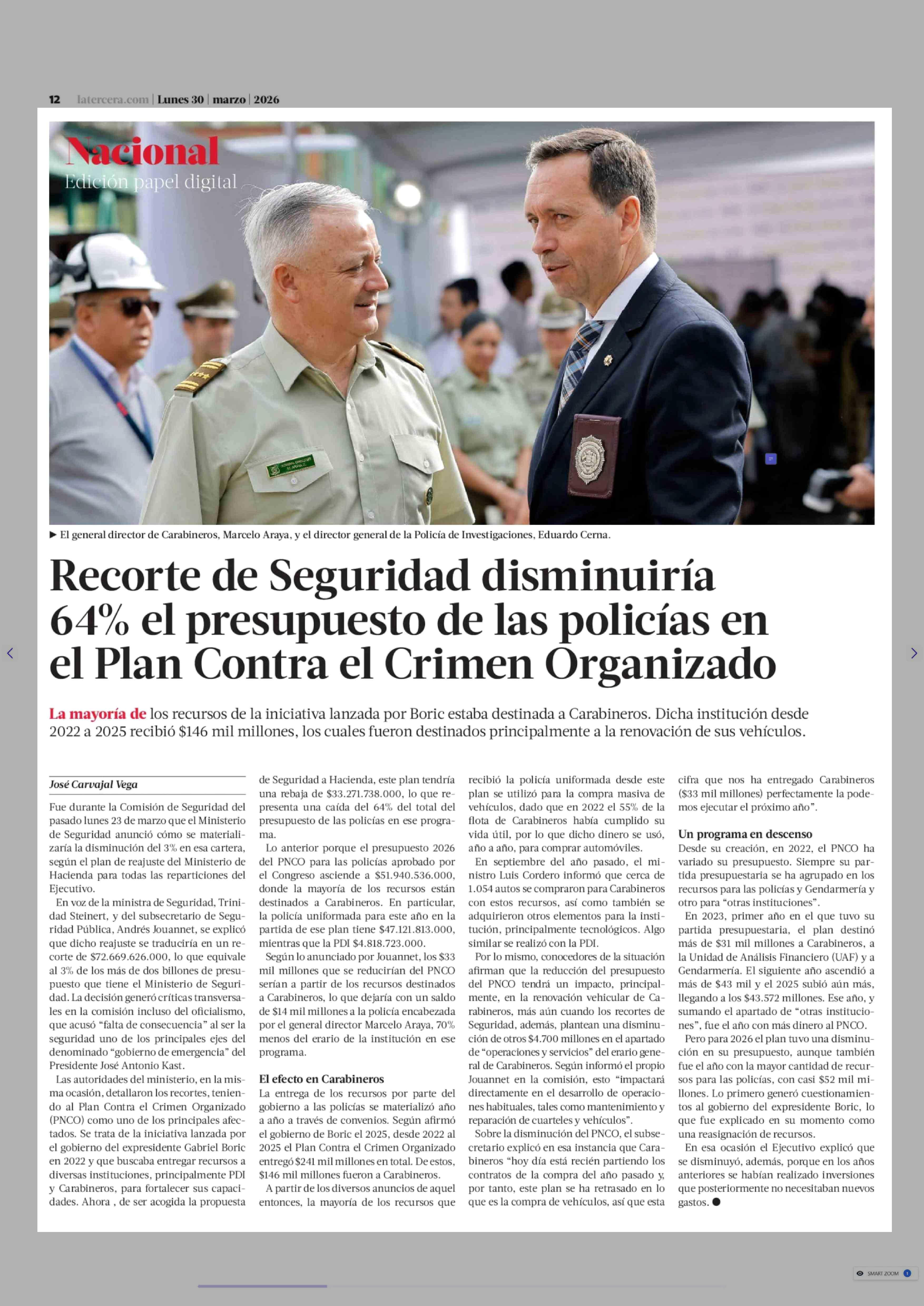 Fuente: La Tercera (La Tercera) Página(s): 12