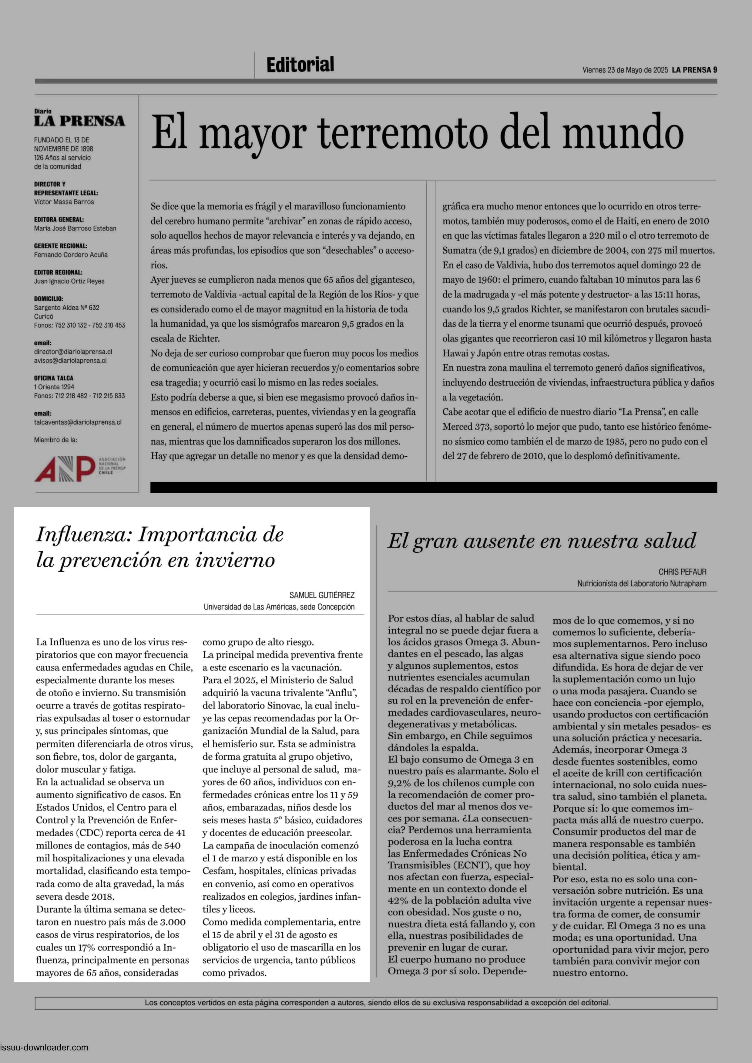CARTAS: Influenza: Importancia de la prevención en invierno 23-05-2025 La Prensa de Curicó |