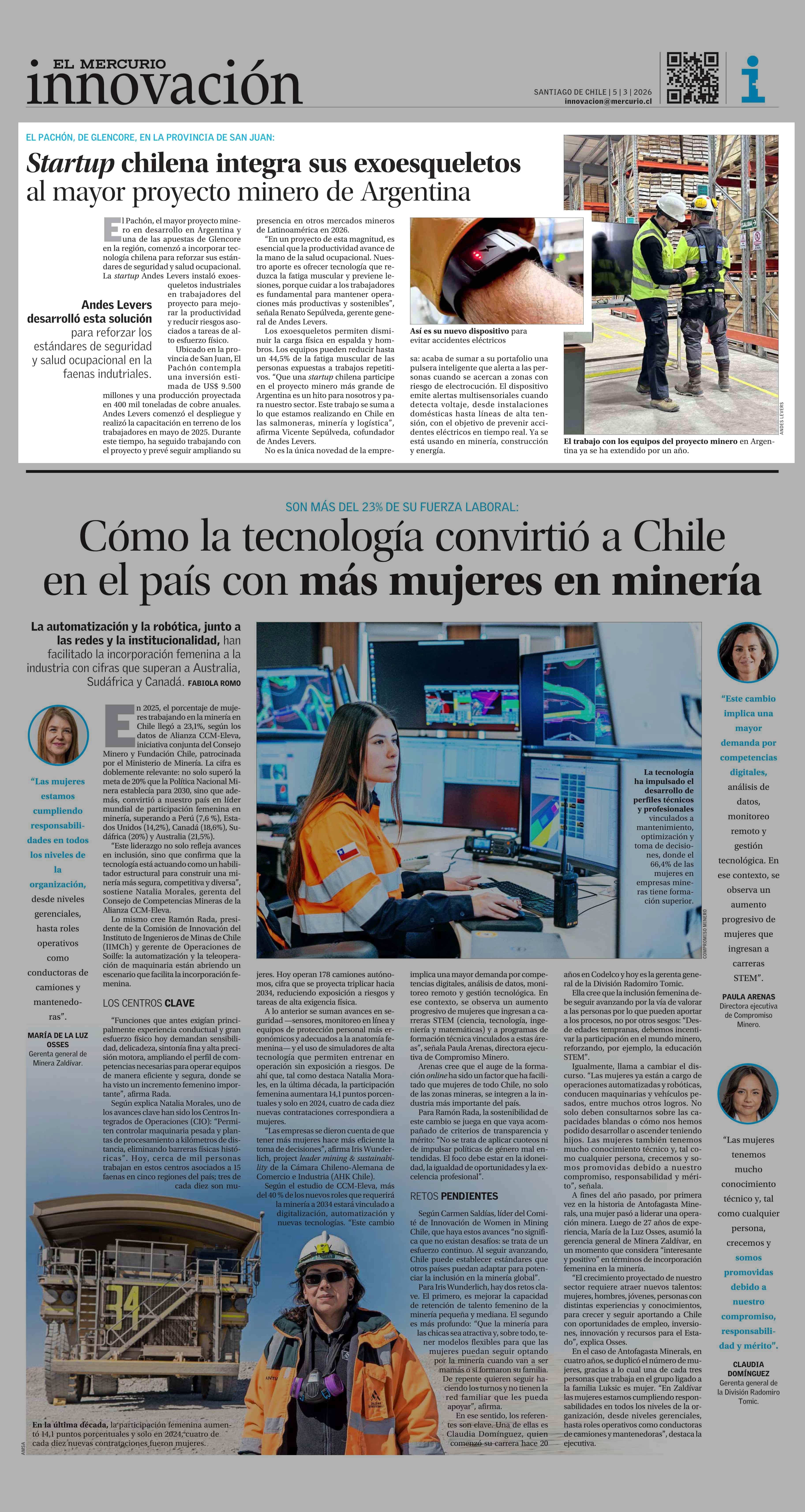 Startup chilena integra sus exoesqueletos al mayor proyecto minero de Argentina 05-03-2026 El Mercurio |