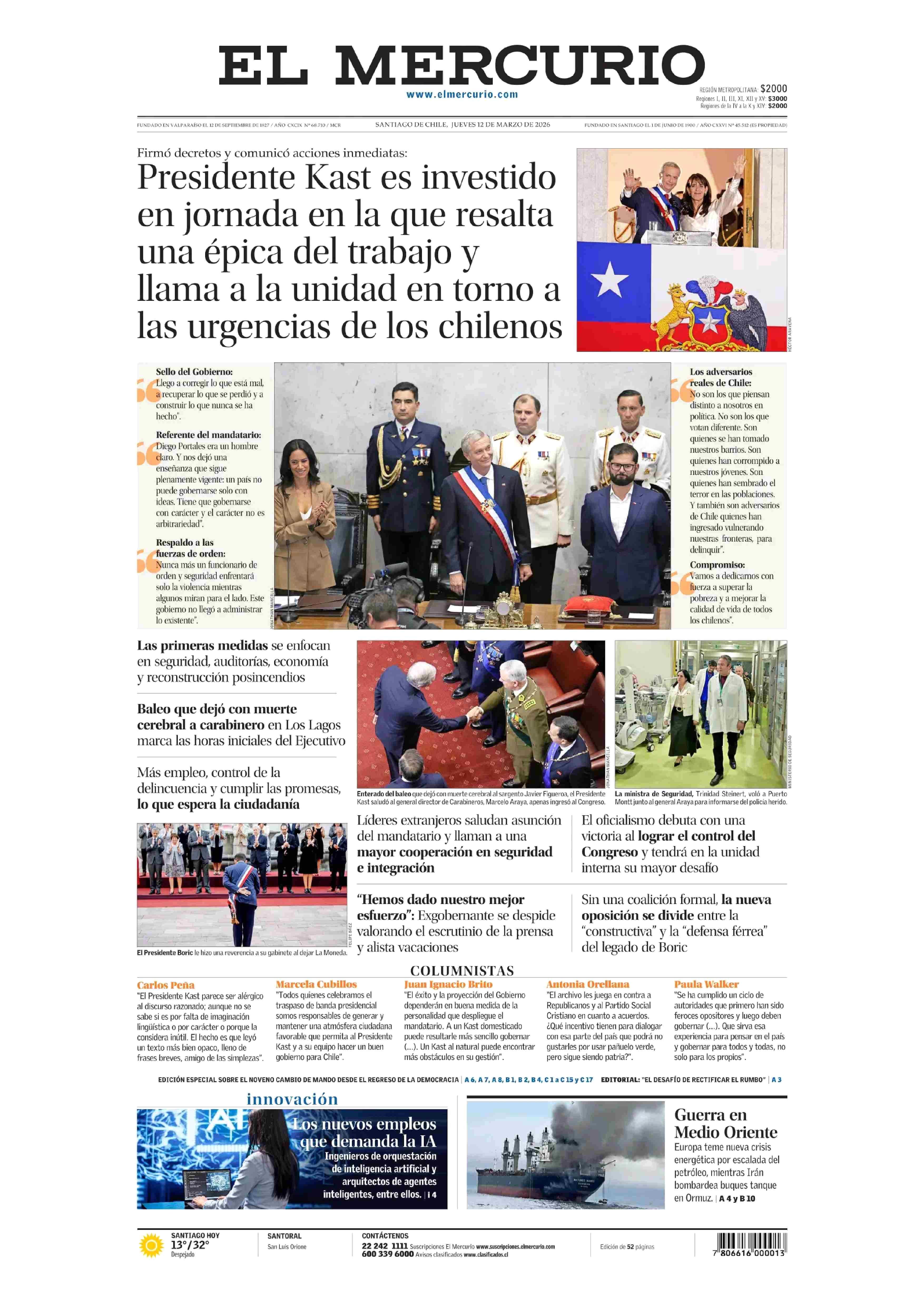 PORTADA EL MERCURIO (A) CHILE 12-03-2026 El Mercurio |