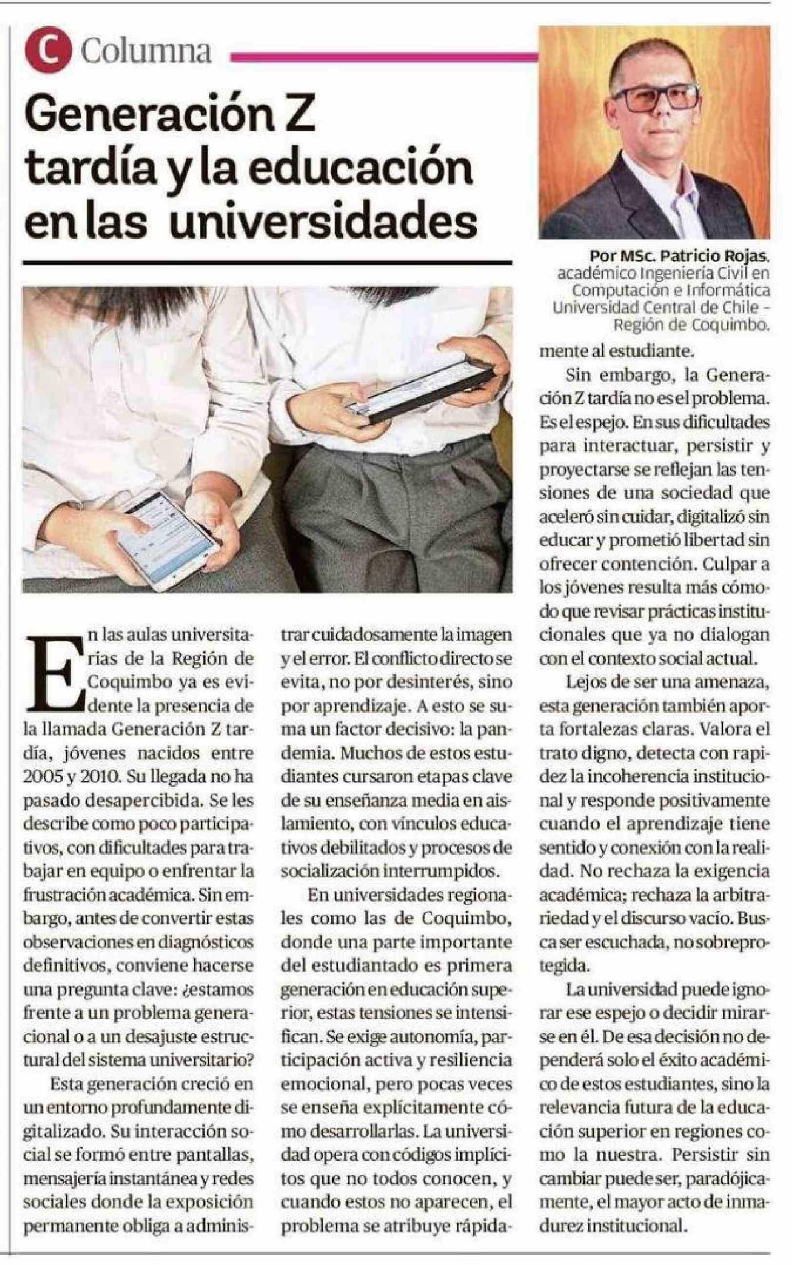 Columnas de Opinión: Generación Z tardía y la educación en las universidades 14-01-2026 Crónica de Chillán |