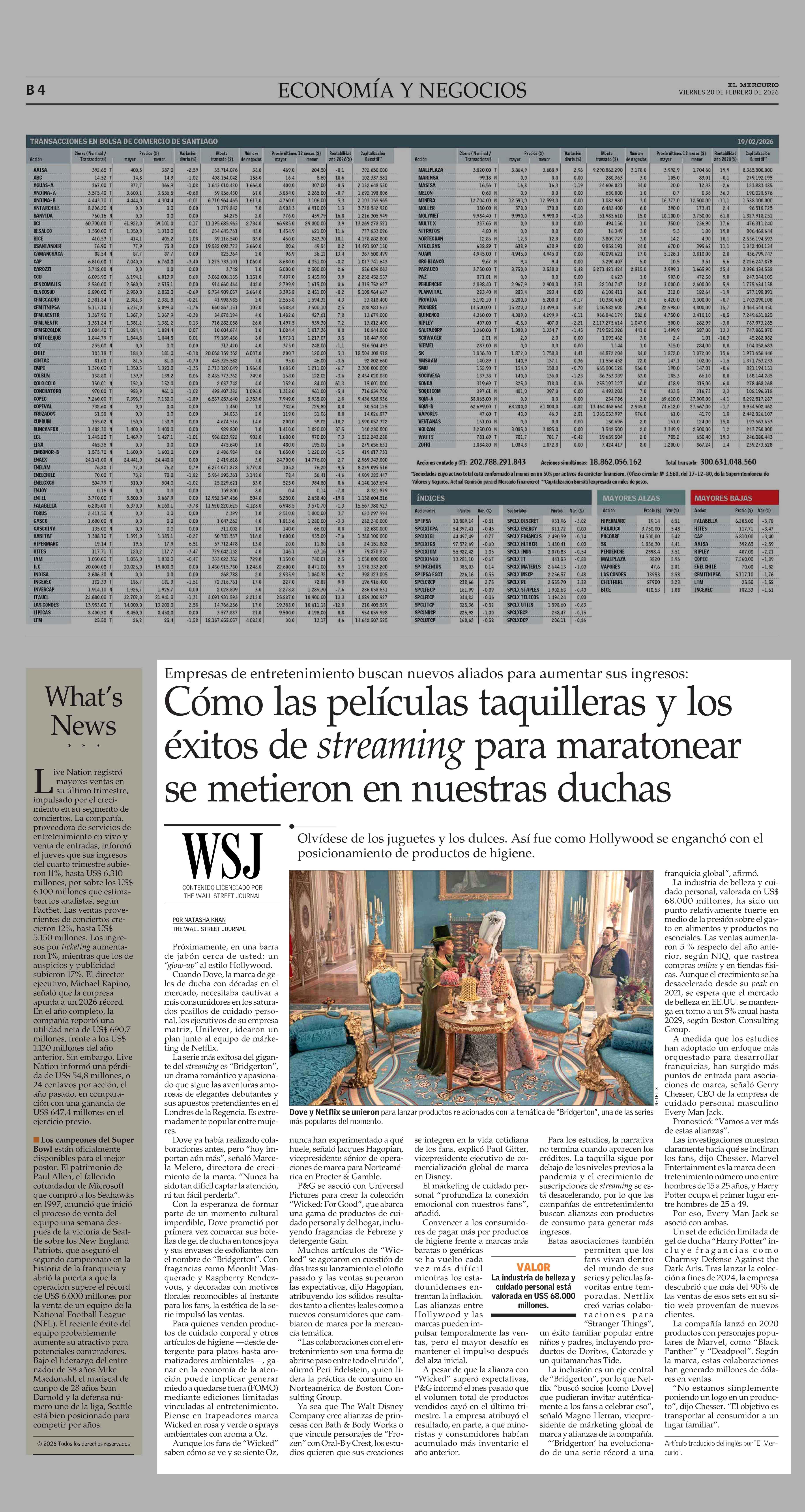 Cómo las películas taquilleras y los éxitos de streaming para maratonear se metieron en nuestras duchas 20-02-2026 El Mercurio |