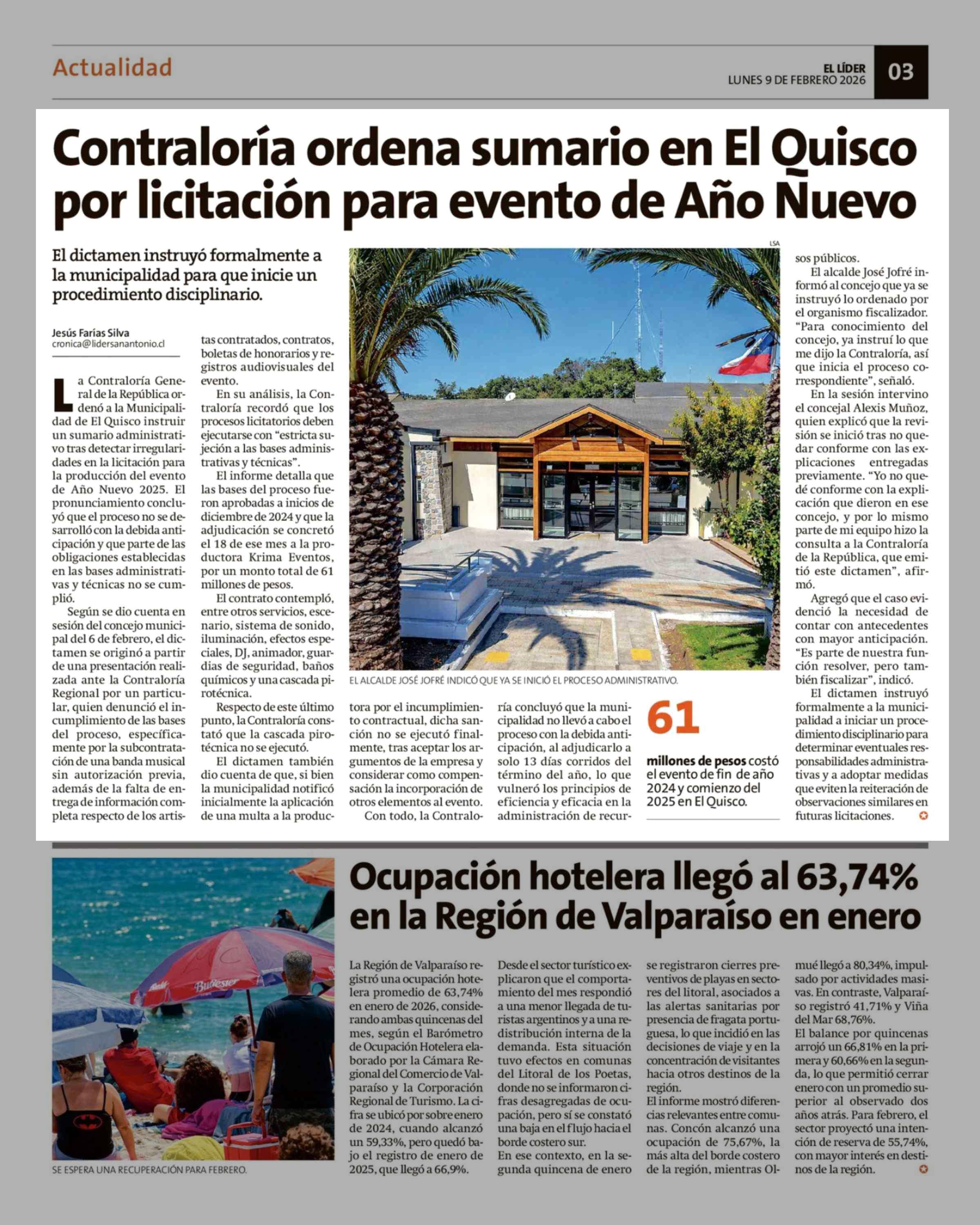 Título: Contraloría ordena sumario en El Quisco por licitación para evento de Año Nuevo