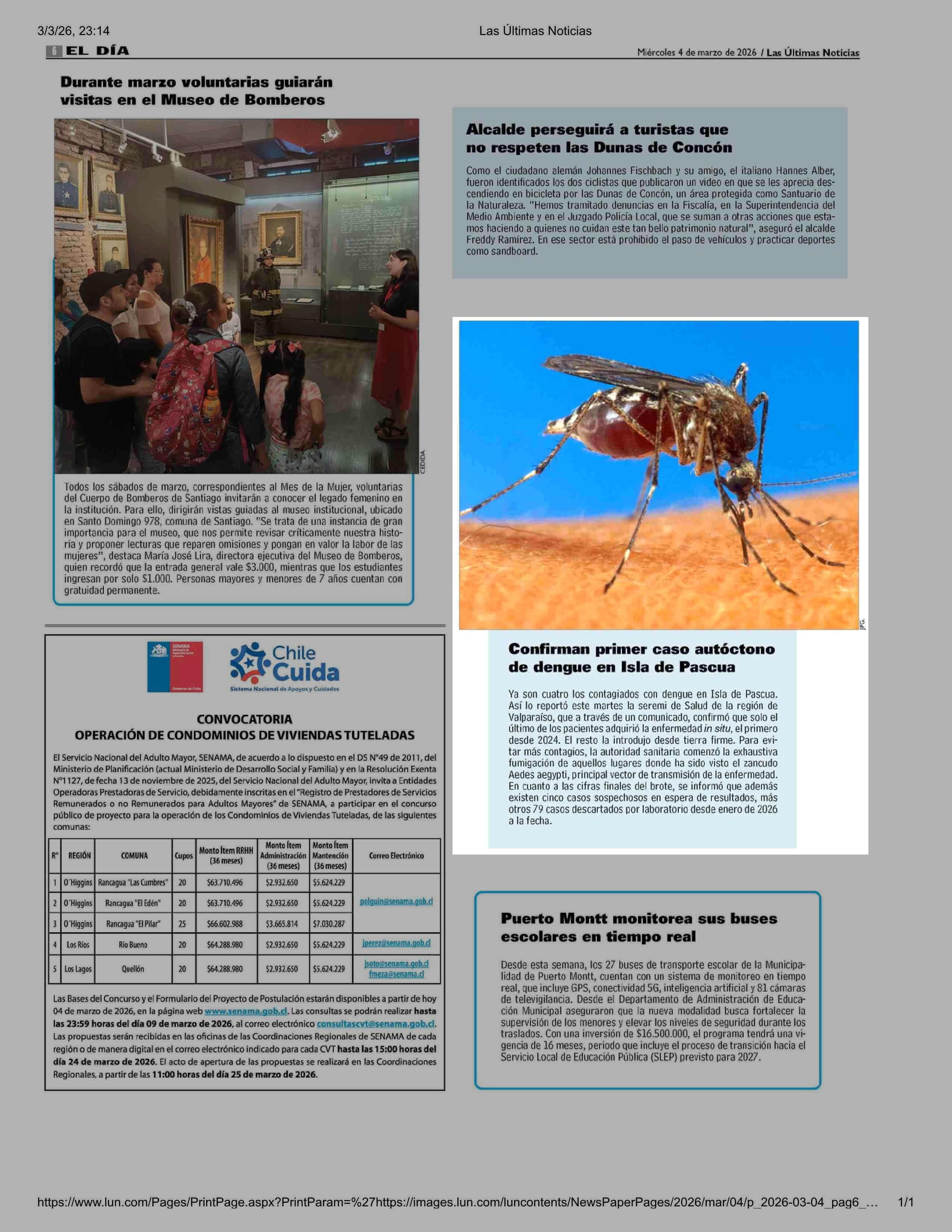Confirman primer caso autócton: de dengue en Isla de Pascua 04-03-2026 Las Últimas Noticias |