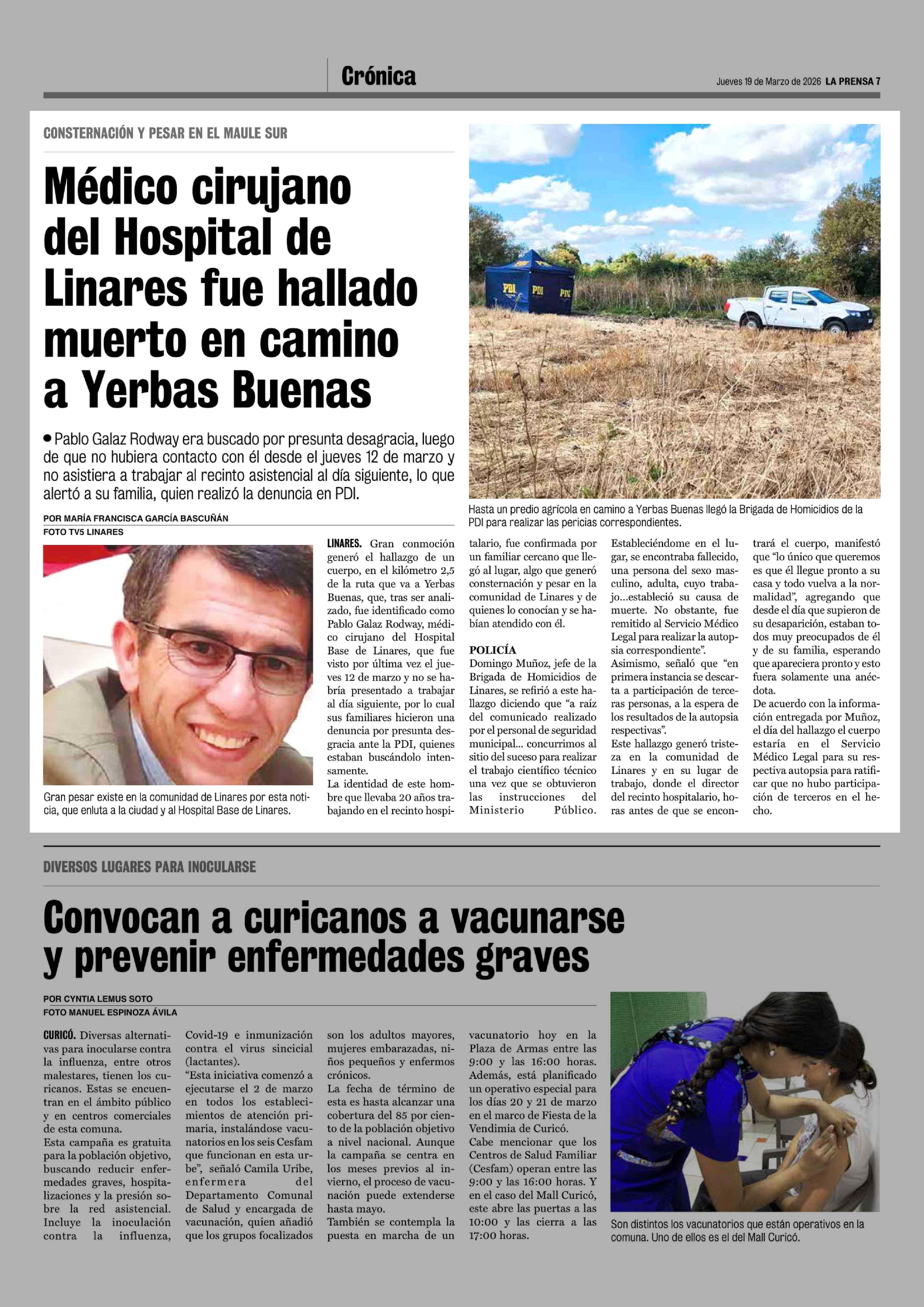 Fuente: La Prensa de Curicó (La Prensa de Curicó) Página(s): 7