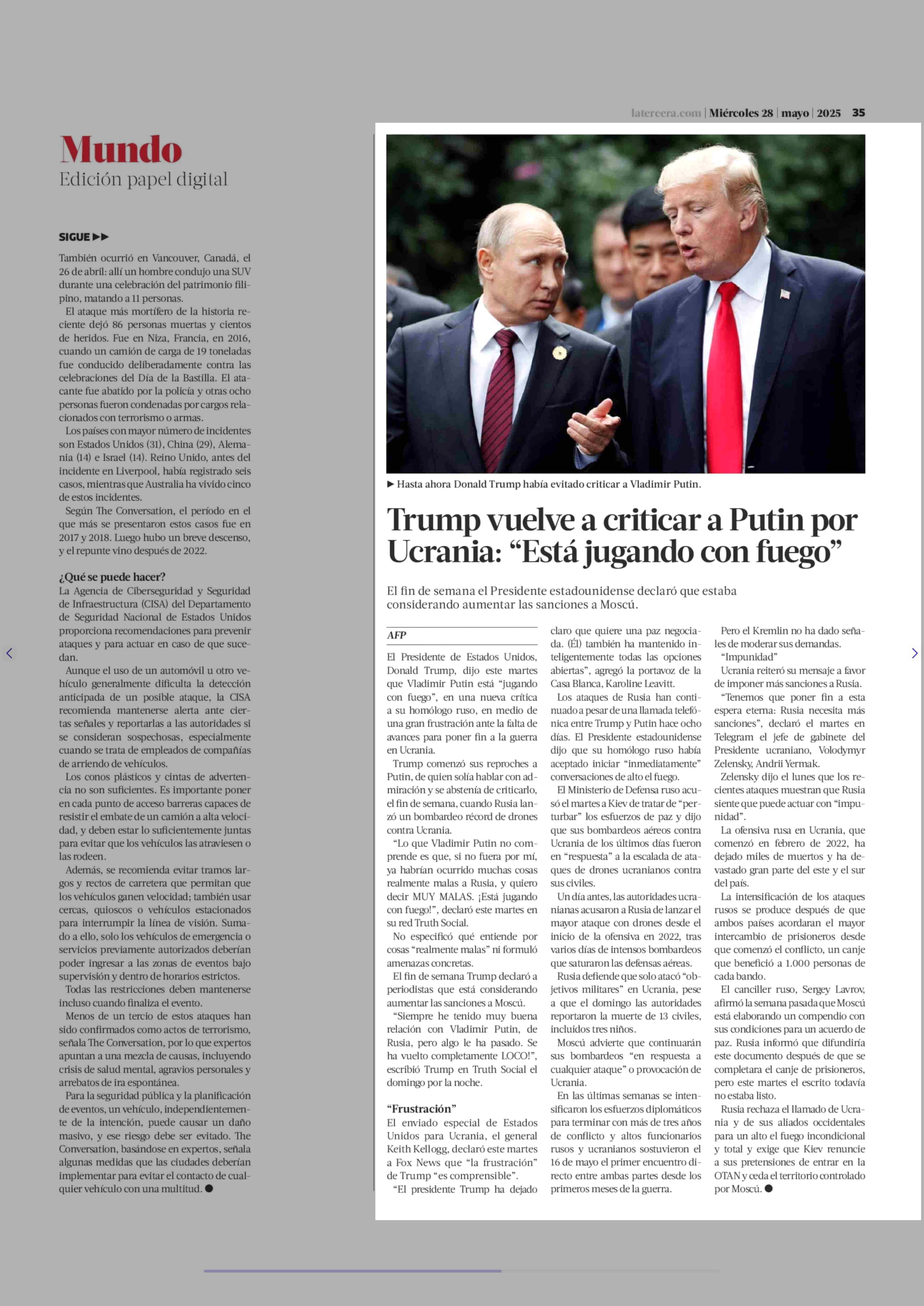 Título: Trump vuelve a criticar a Putin por Ucrania: “Está jugando con fuego”