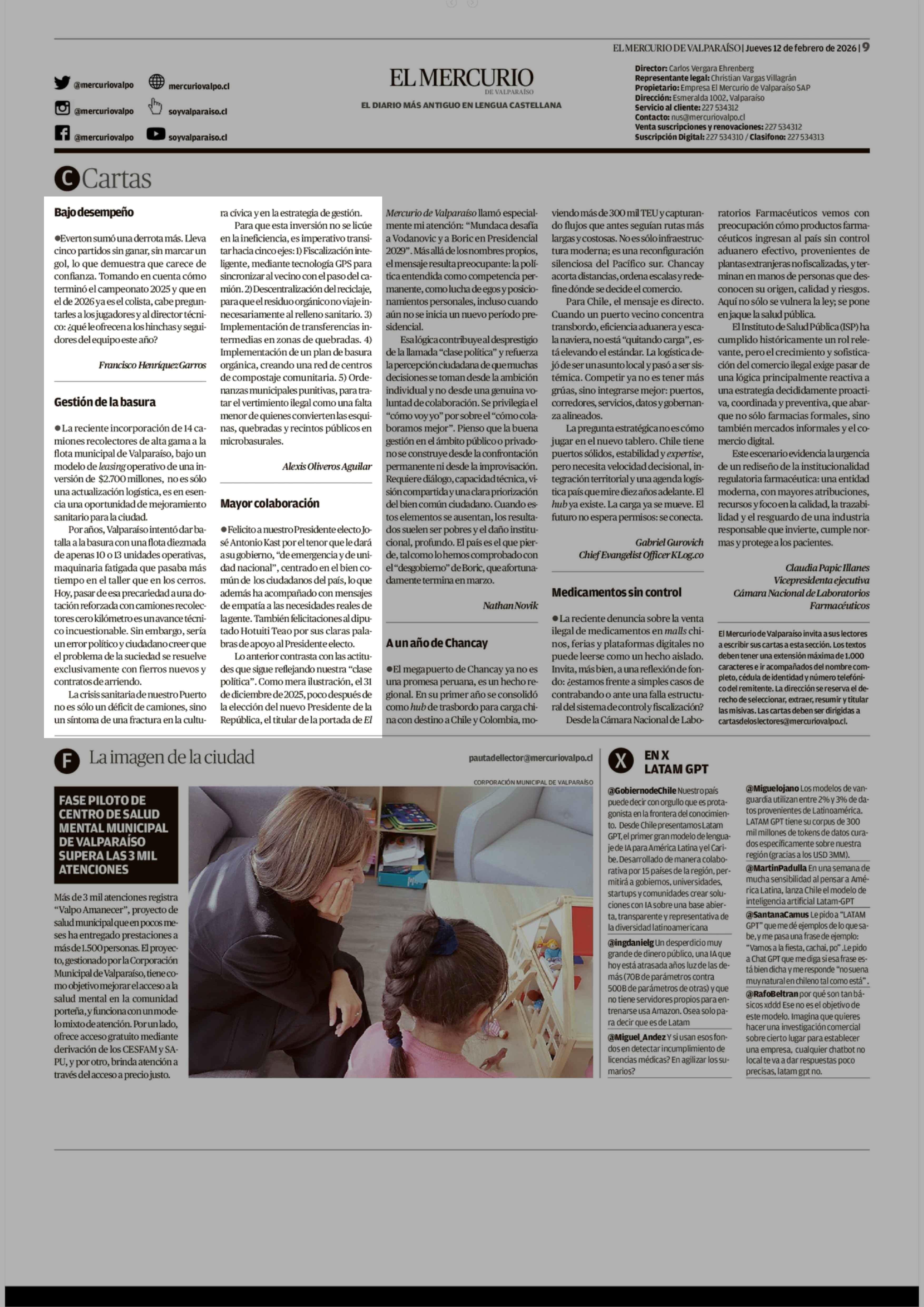 Cartas: Gestión de la basura 12-02-2026 El Mercurio de Valparaíso |