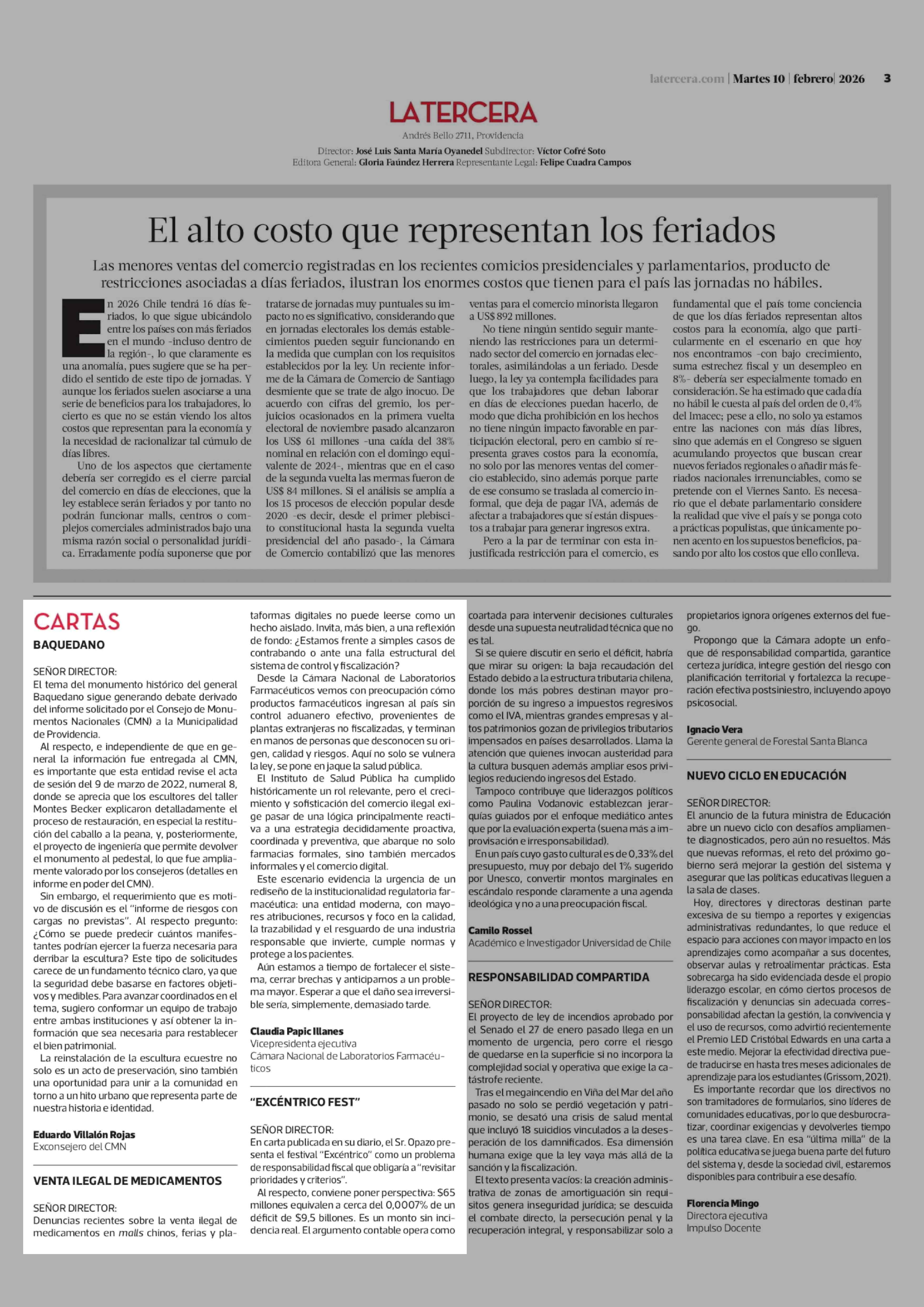 Cartas: VENTA ILEGAL DE MEDICAMENTOS 10-02-2026 La Tercera |