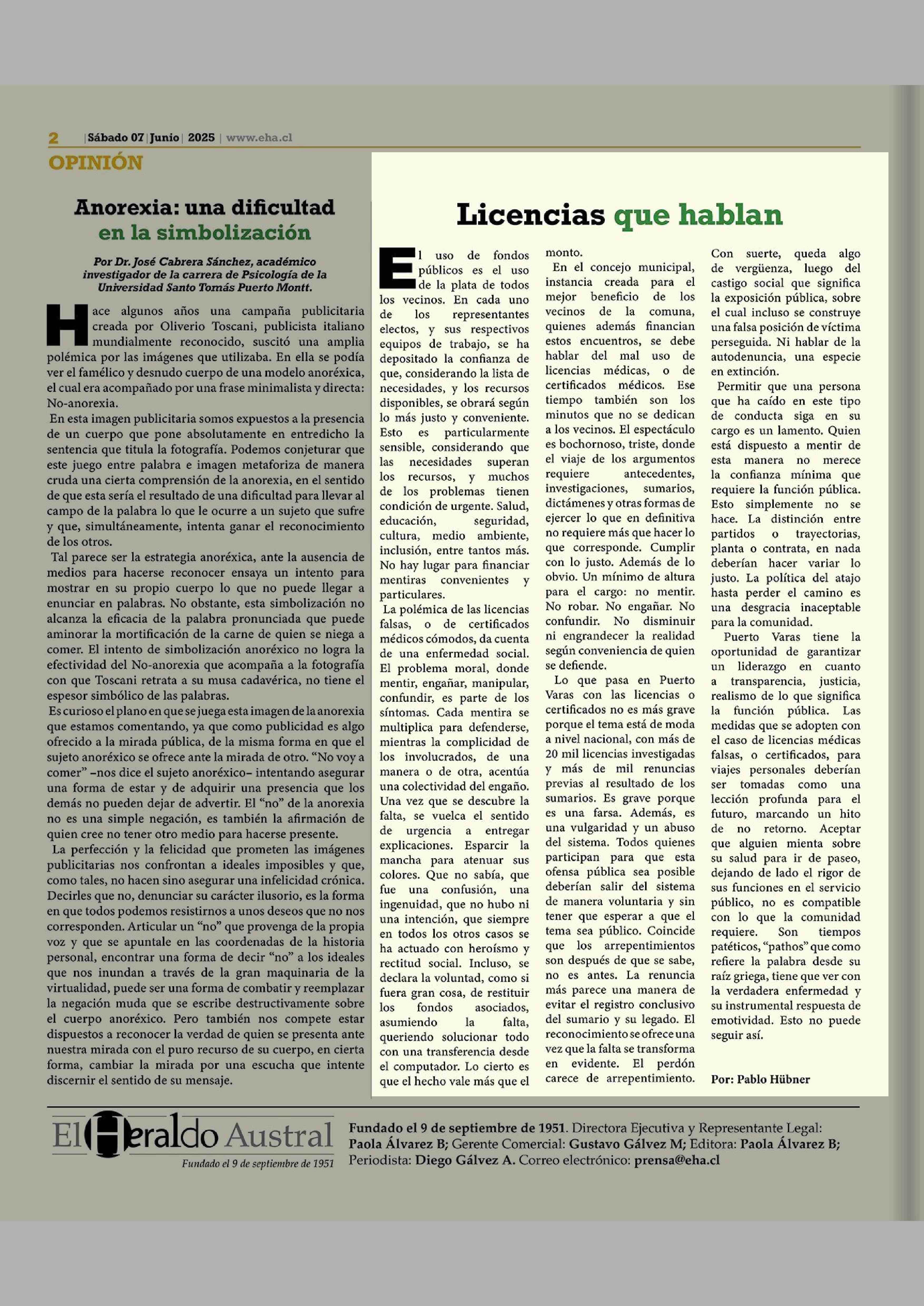 COLUMNAS DE OPINIÓN: Licencias que hablan 07-06-2025 El Heraldo Austral |