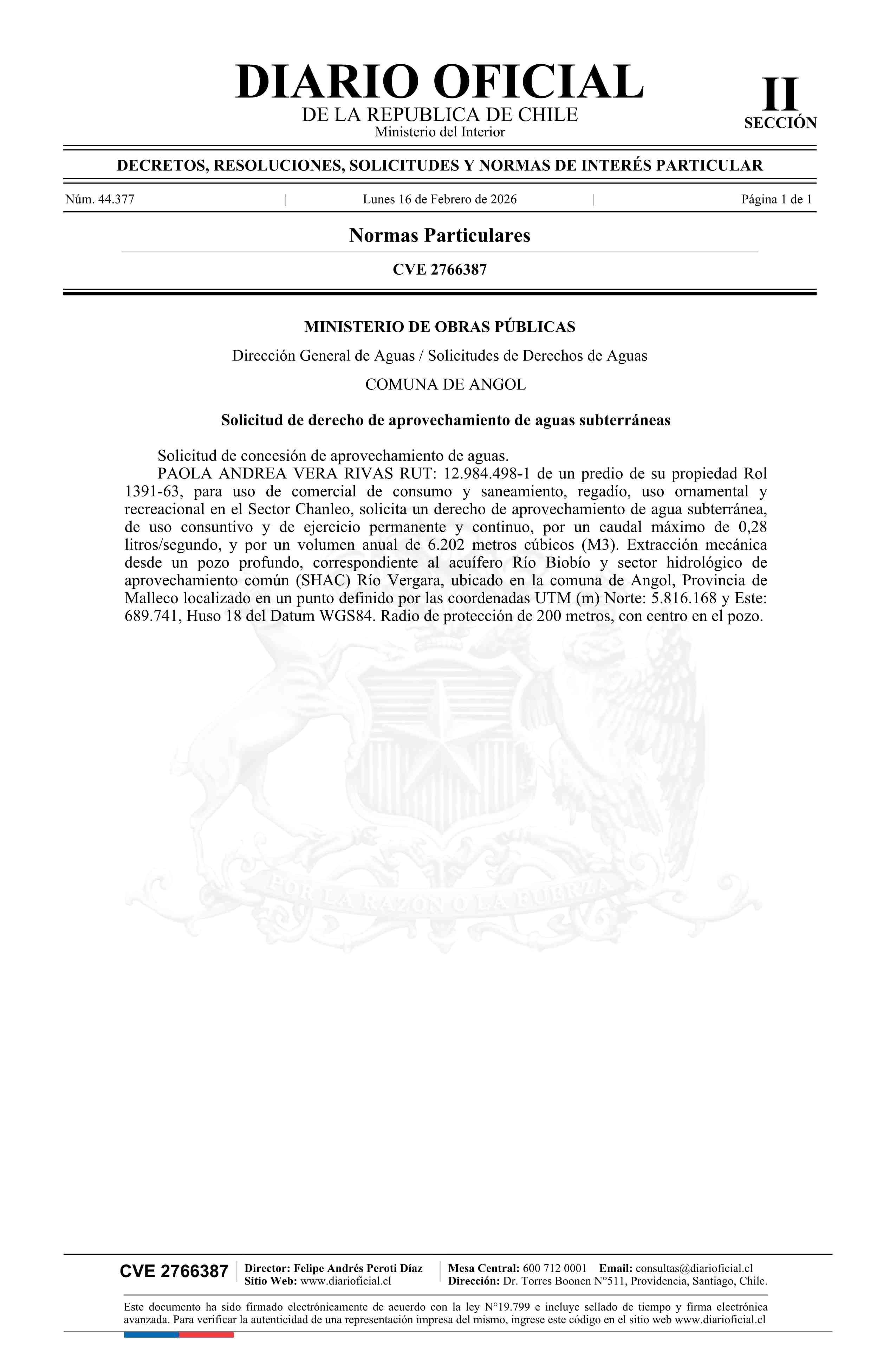 Solicitud Vera Rivas Paola Andrea 16-02-2026 Diario Oficial Edición Electrónica |