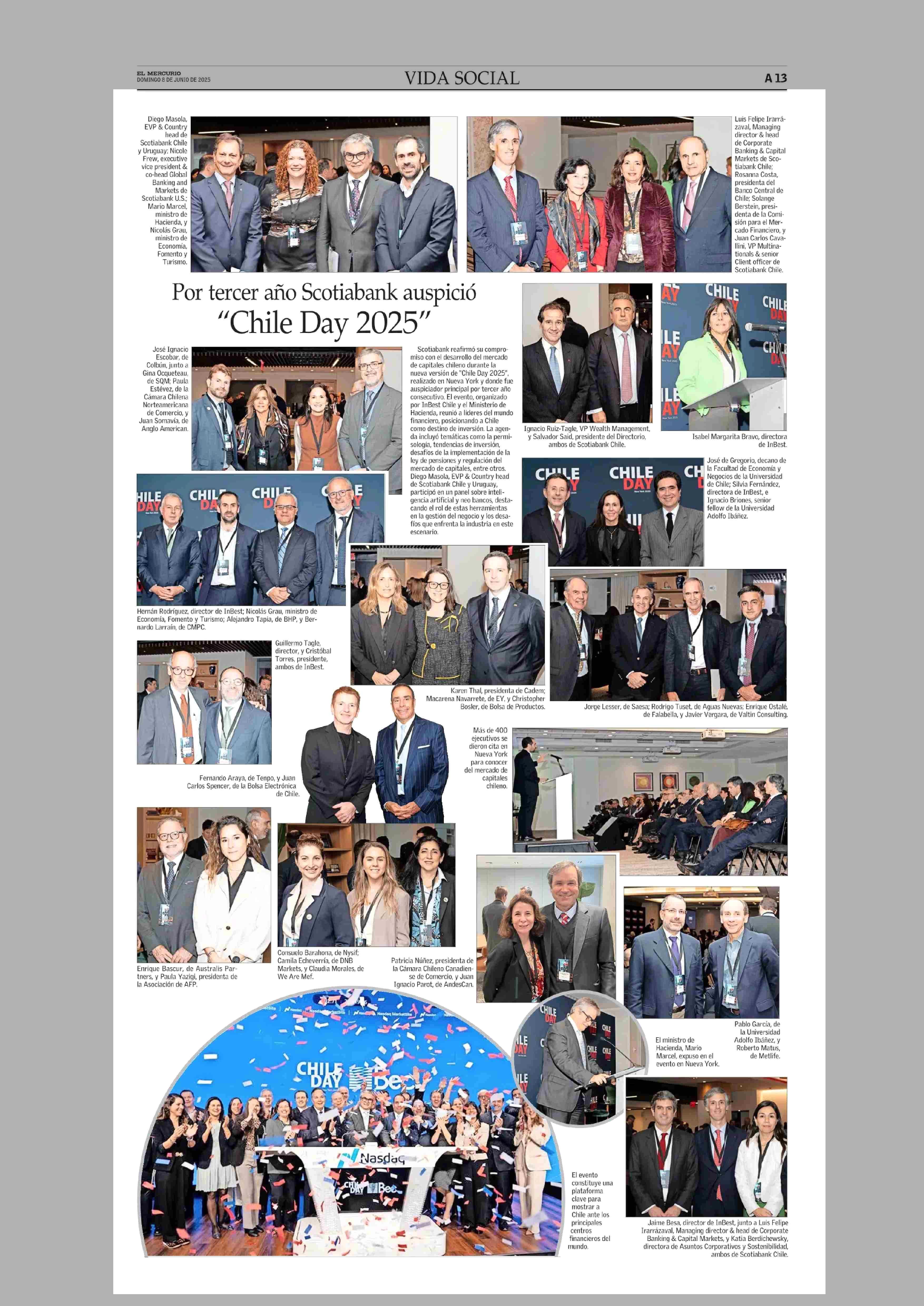 Por tercer año Scotiabank auspició “Chile Day 2025” 08-06-2025 El Mercurio |