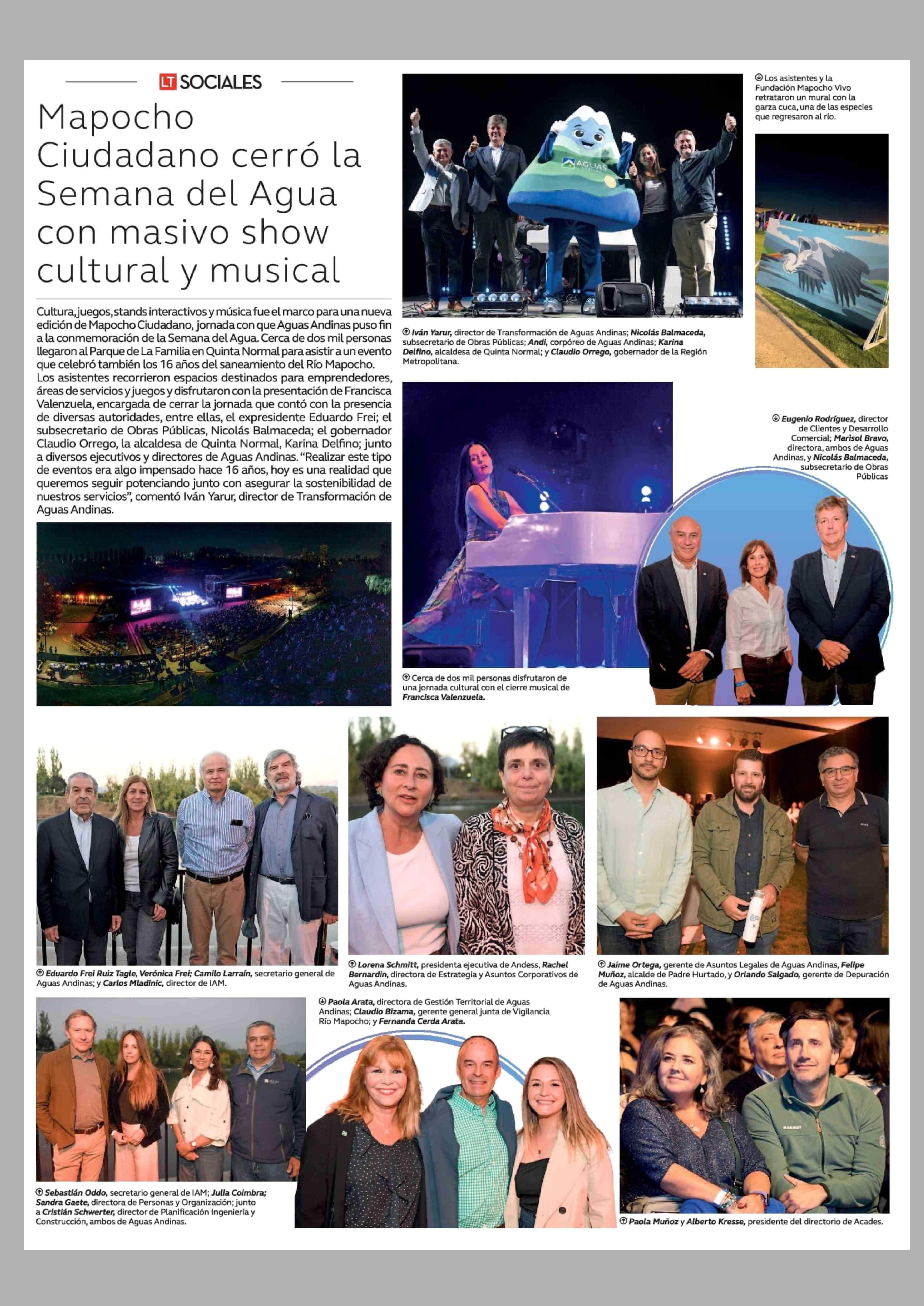 Mapocho Ciudadano cerró la Semana del Agua con masivo show cultural y musical 05-04-2026 La Tercera |